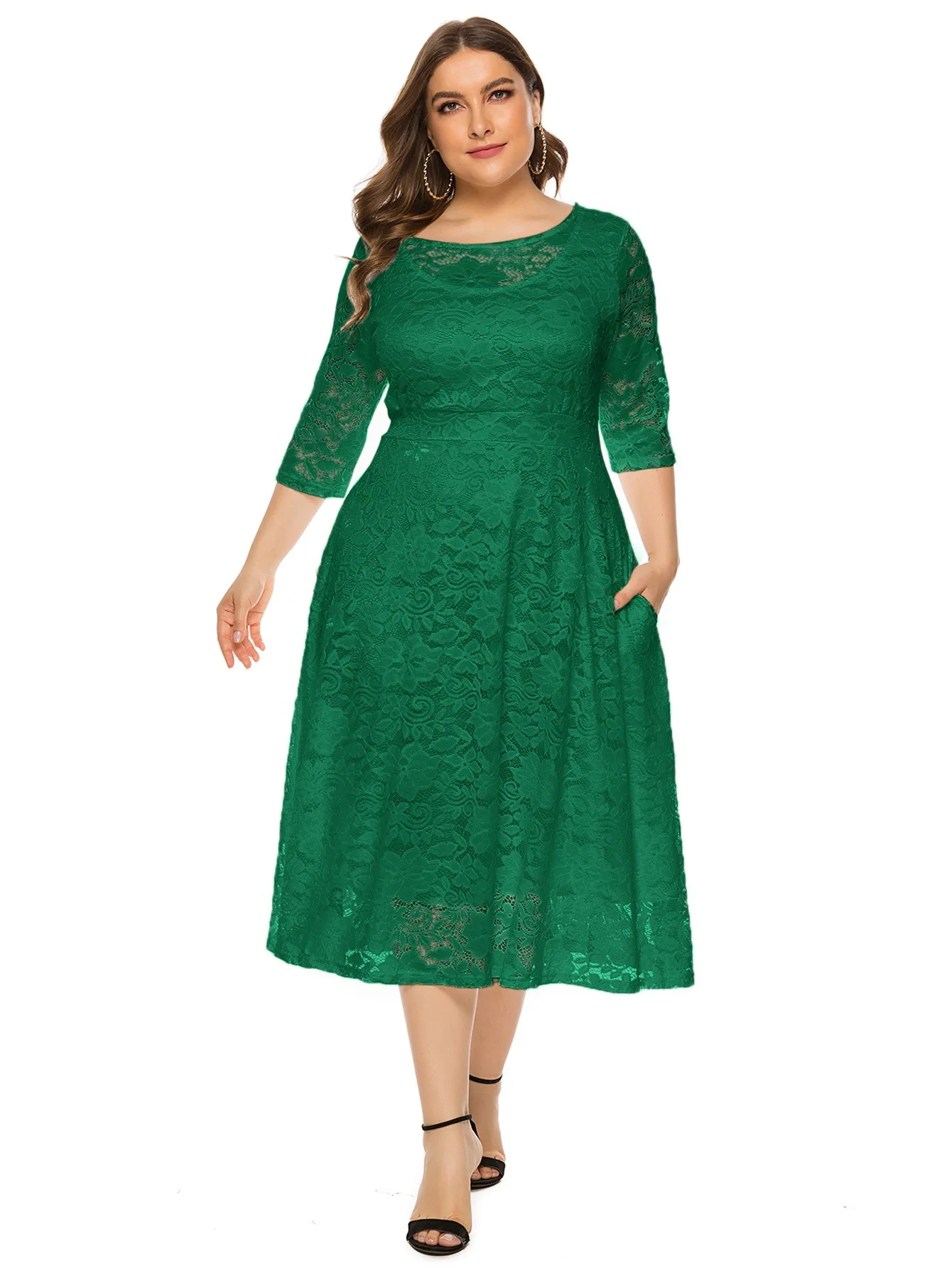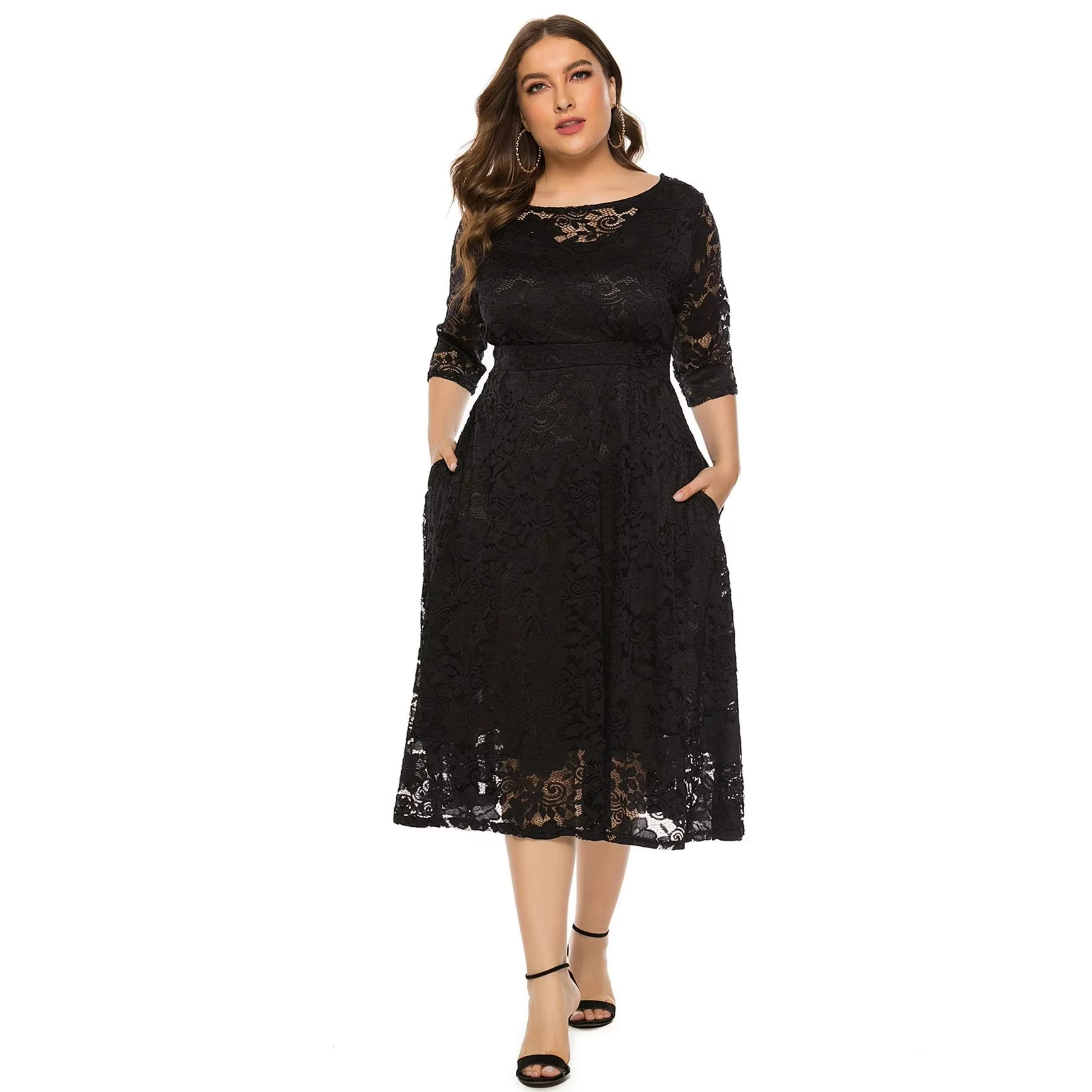 High Quality Women's Plus Size Lace Casual Dress Fashion Large Size Party Dress