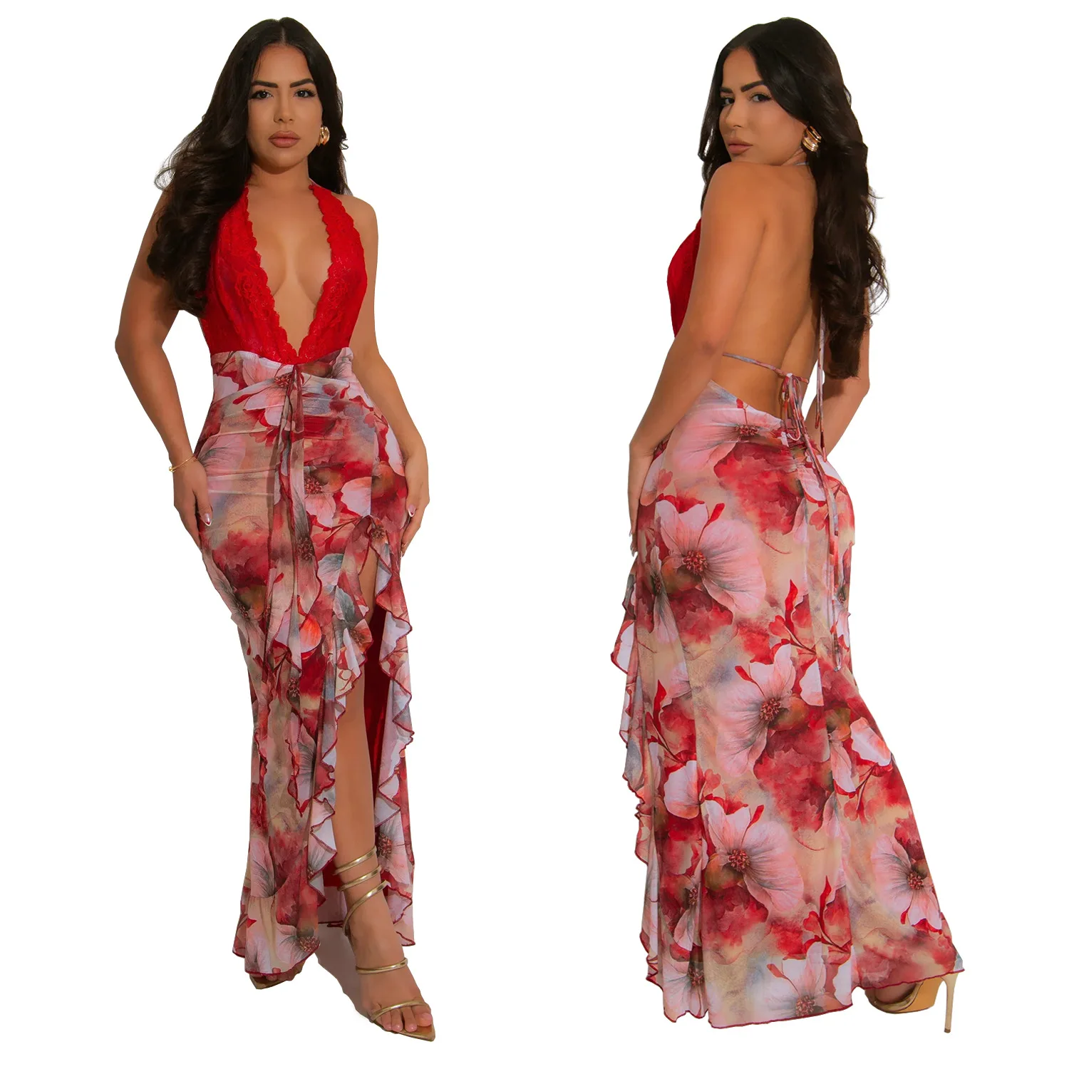 New Fashion Deep V Summer Women Dress Sexy Backless Colorful Party Evening Dress