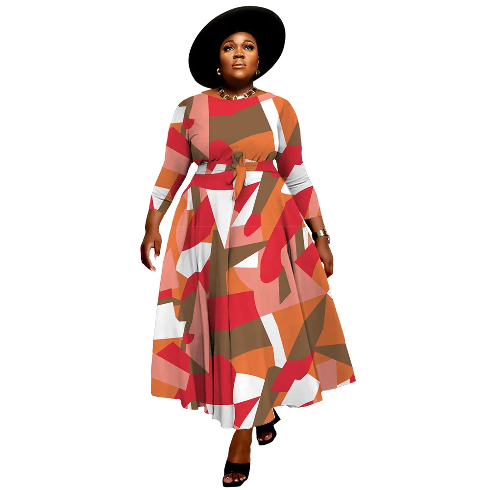 ZYHT 73963 Matte Satin Printed Geometric Pattern Maxi Women Asymmetric One Shoulder Ruched Hem Women Dress