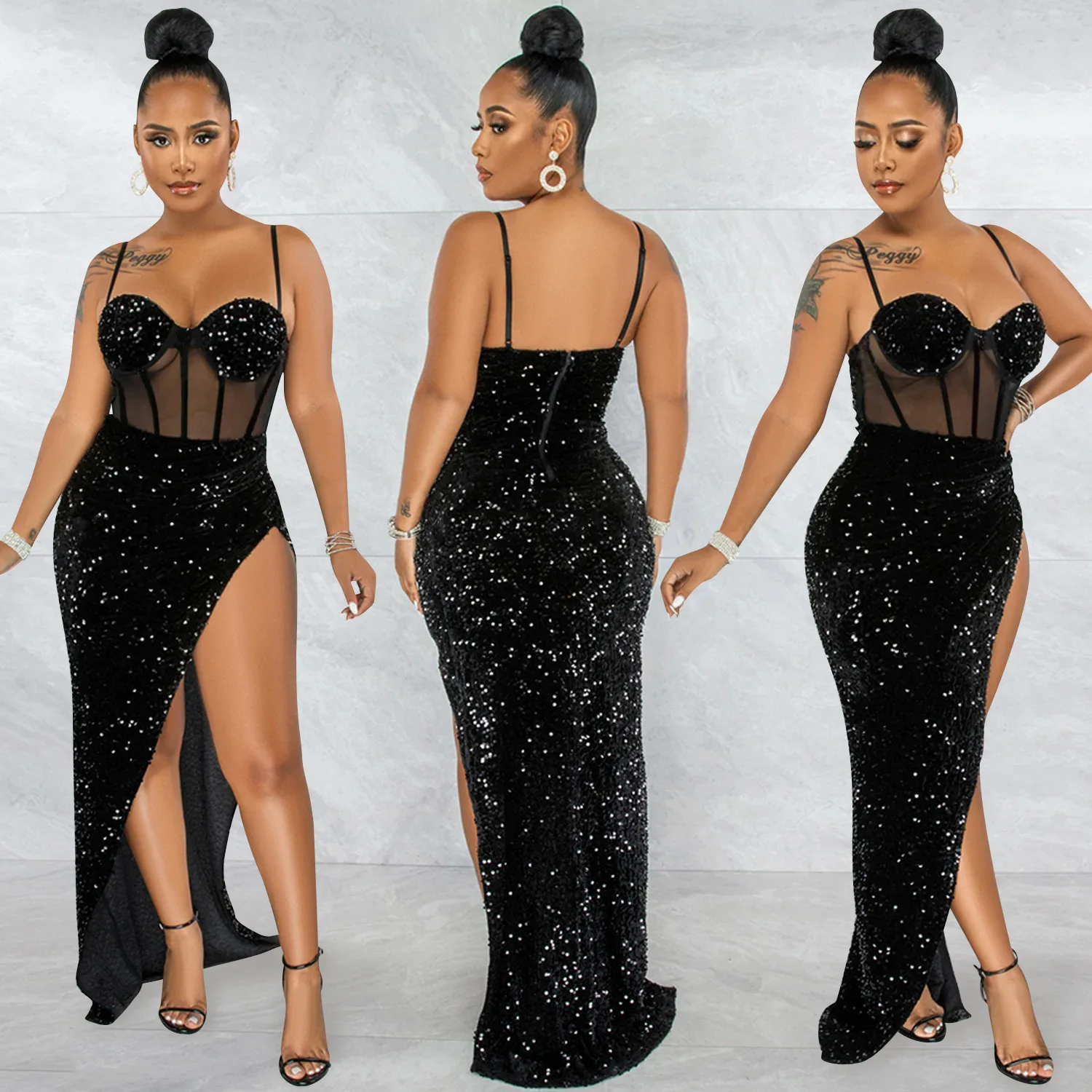 High Quality Club Party Dresses 2 Pieces Set Bodysuit Sexy Evening Dress for Women