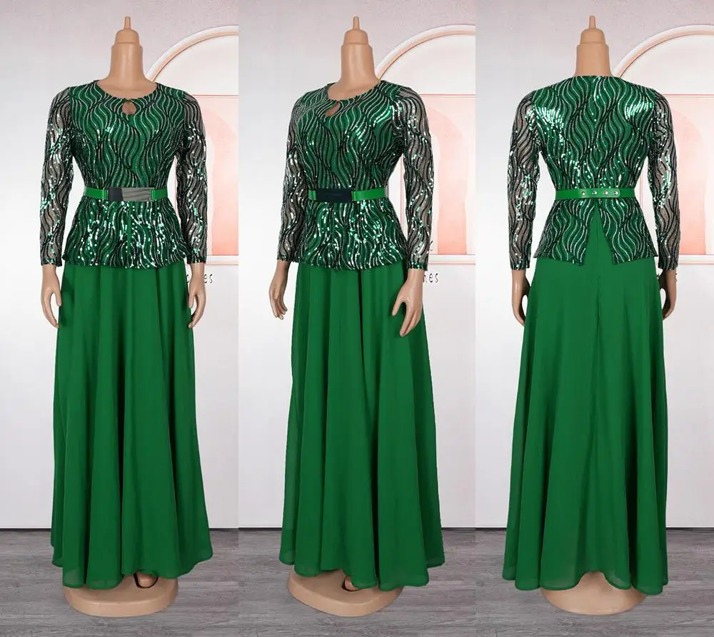 Newest Design Ladies Modern Dress African Dress Sequin Long Sleeve Chiffon Party Dress for Plus Size Women