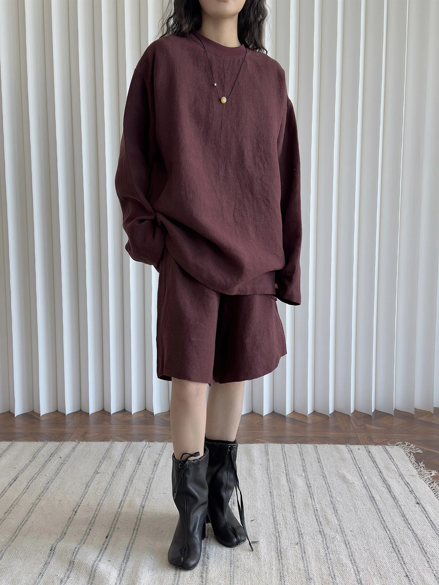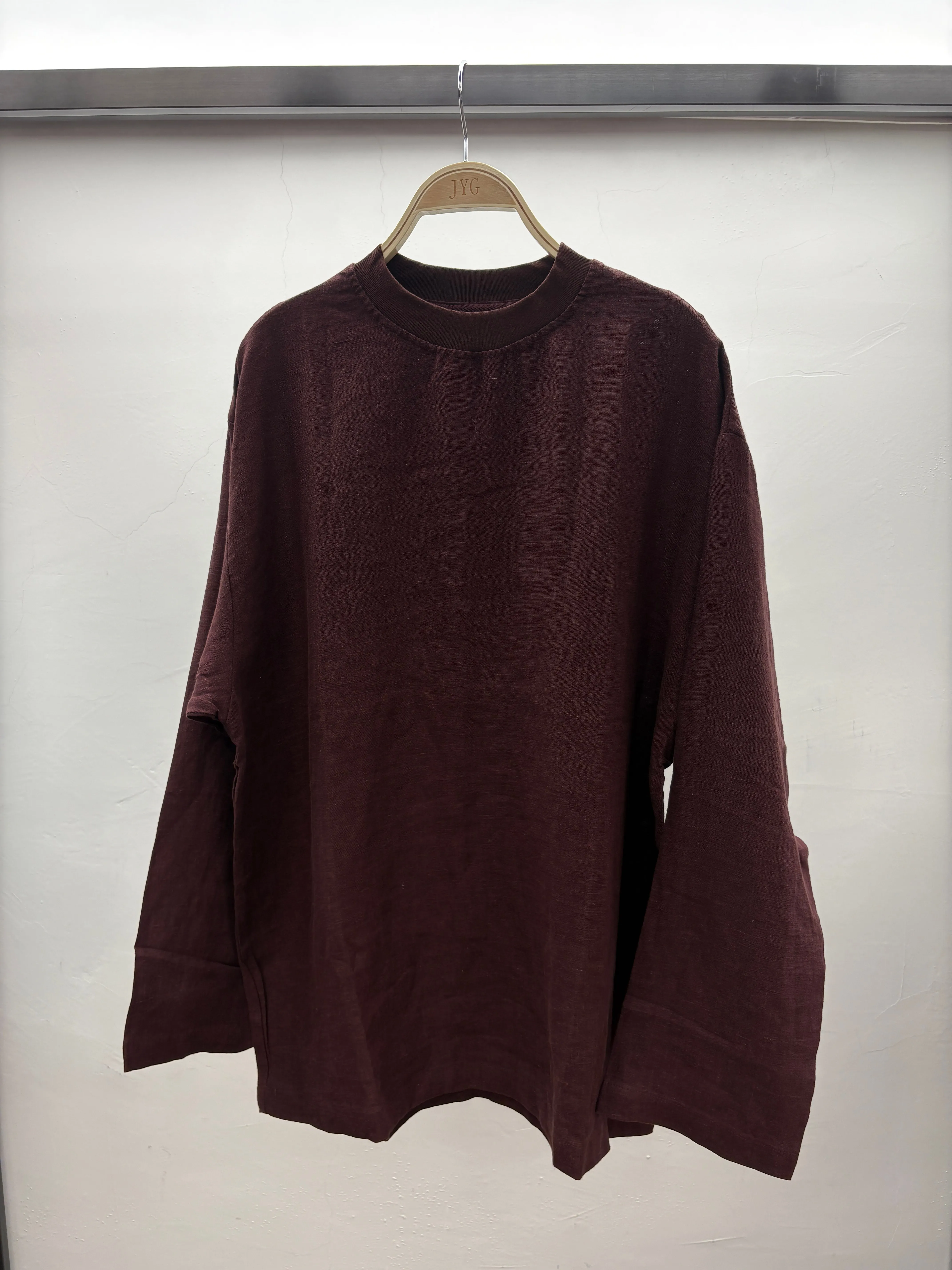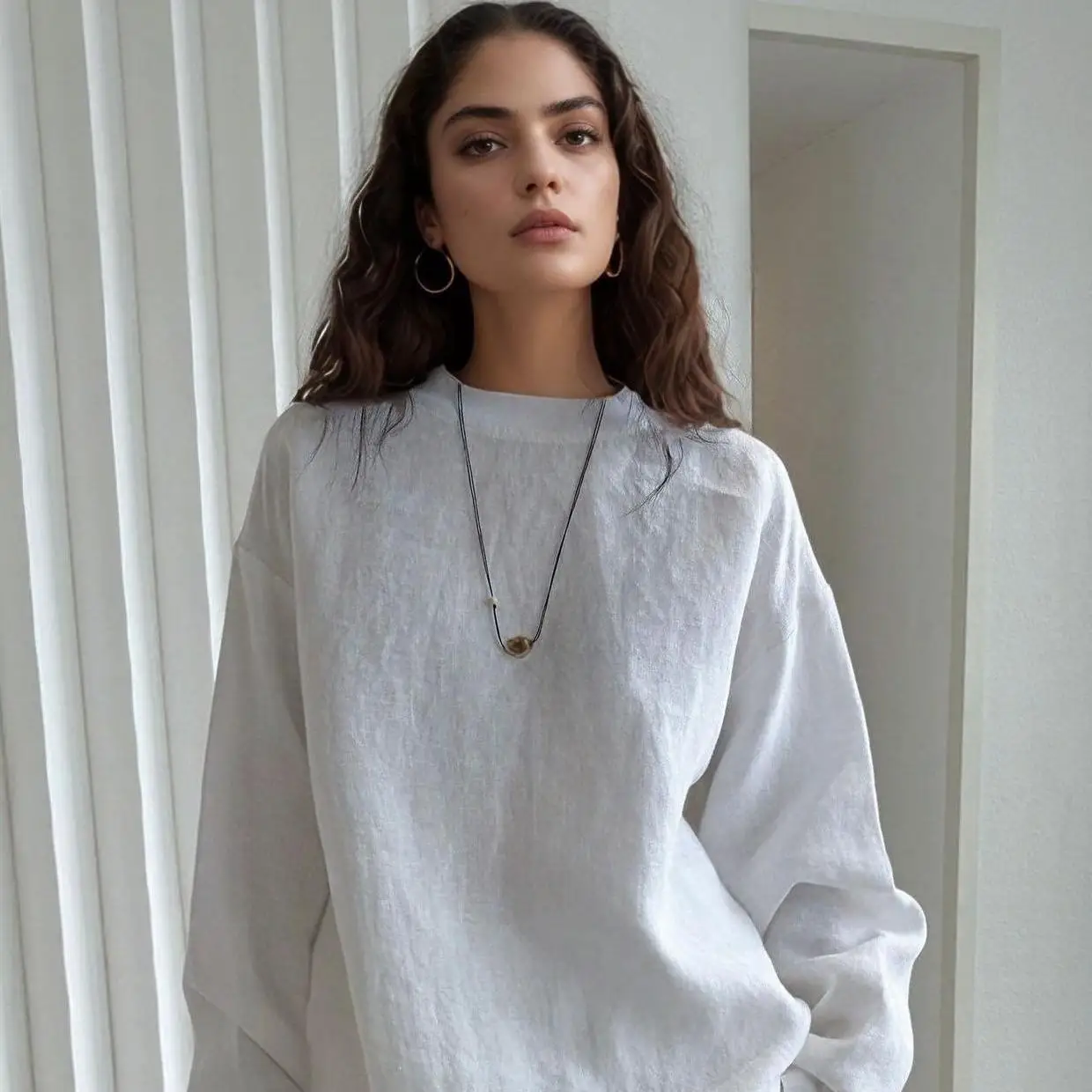 Sustainable Eco Friendly 100% Linen Oversized Solid Round Neck Drop Shoulder Long Sleeve Streetwear Top Women Workwear Clothes
