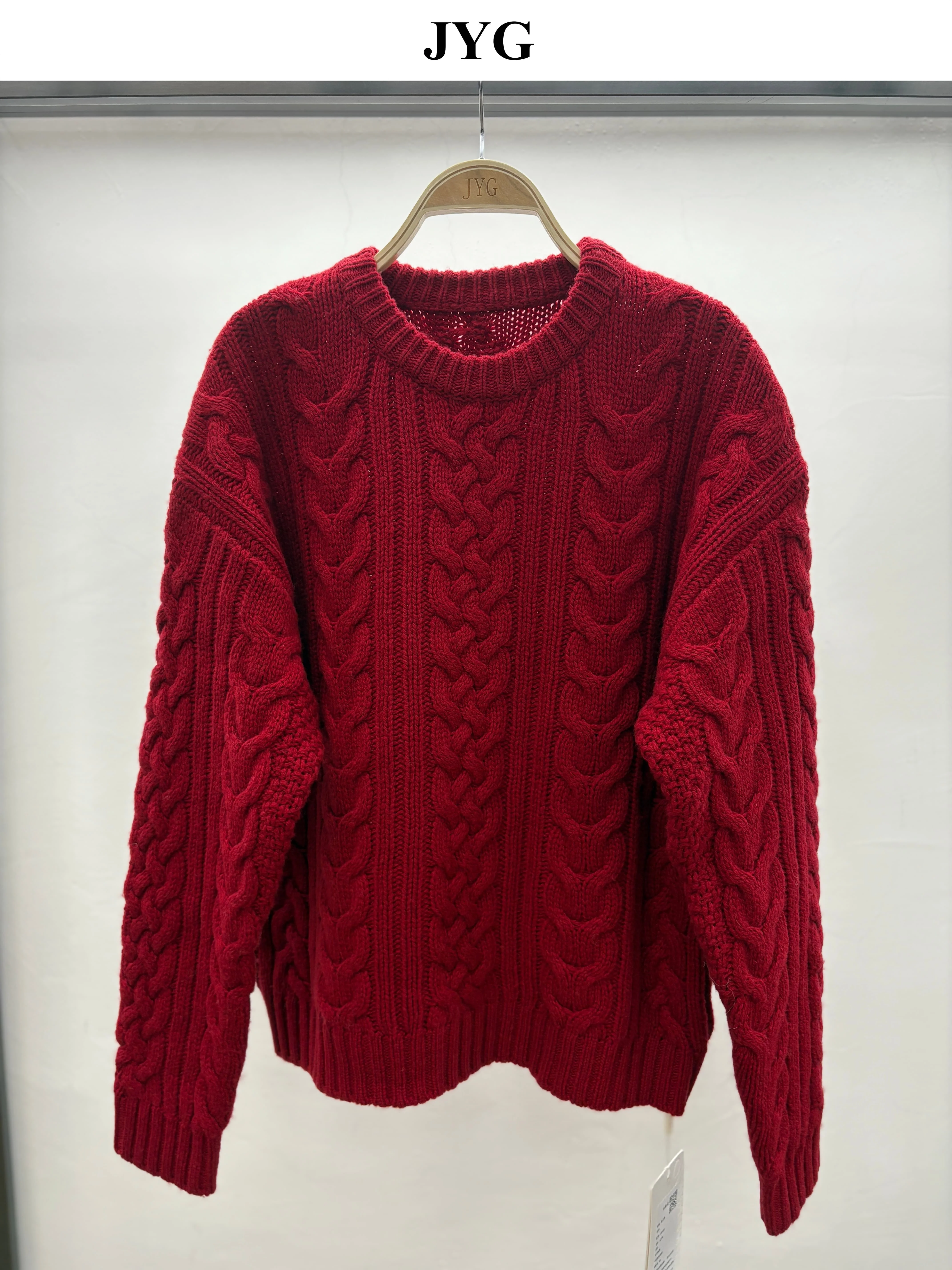 Sustain Women's Casual Fashion 100% Wool Cable Knit Thick Crew Neck Solid Eco-Friendly Fabric Front Long Sleeve Loose Fit Solid