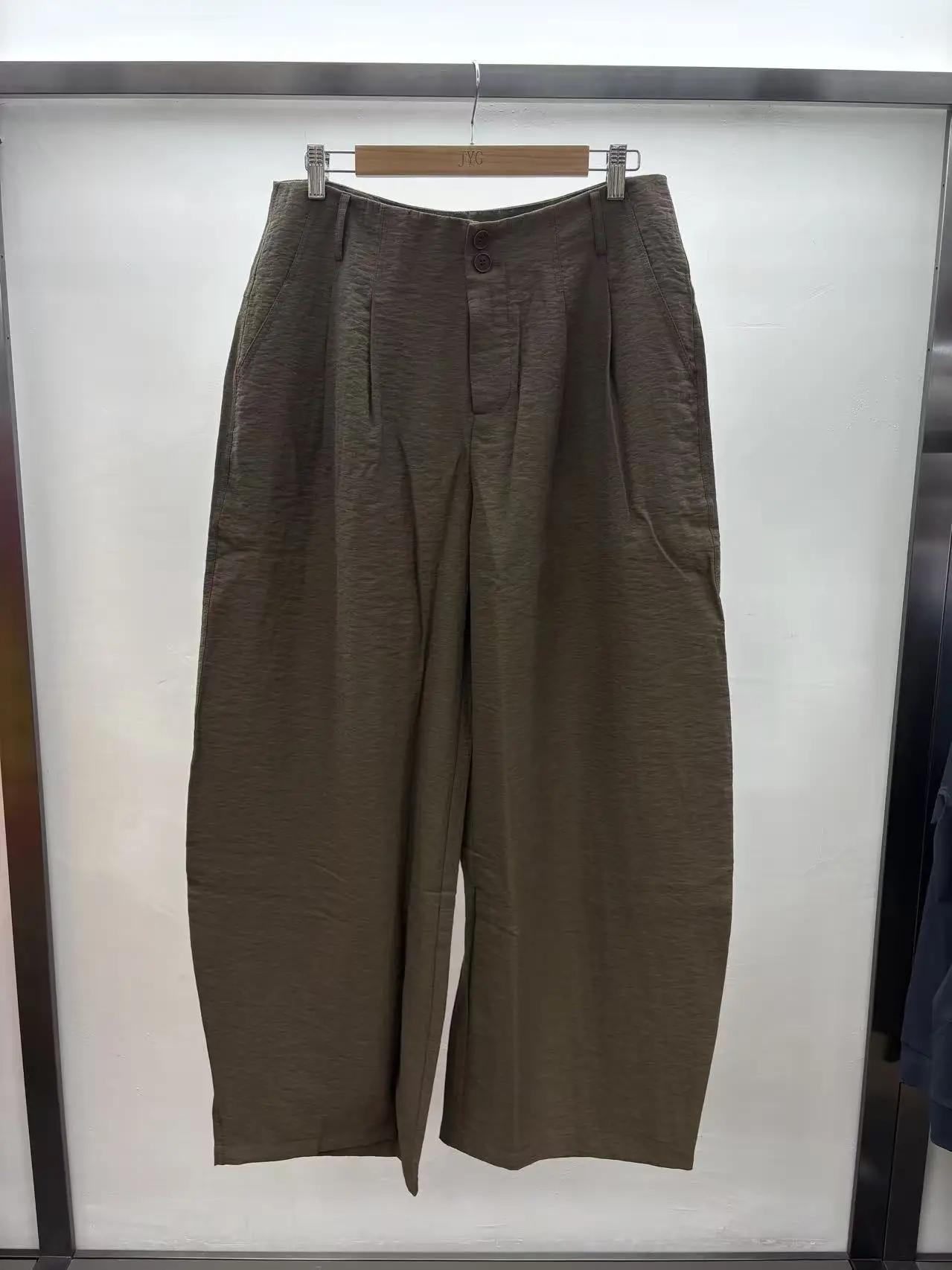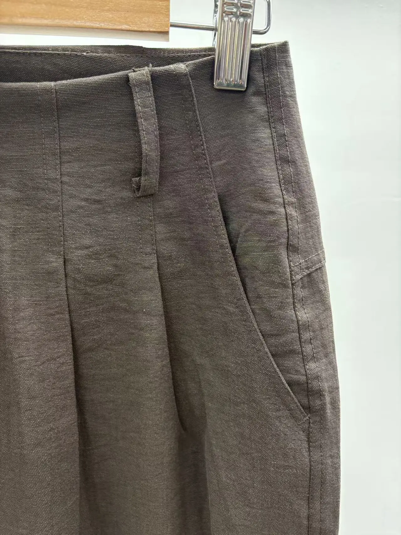 Women Minimalist Workwear Pleated Wide Leg Trouser with Breathable Sustainable Linen-Blend Fabric for Both Work & Casual Setting