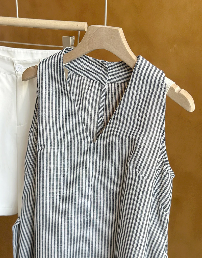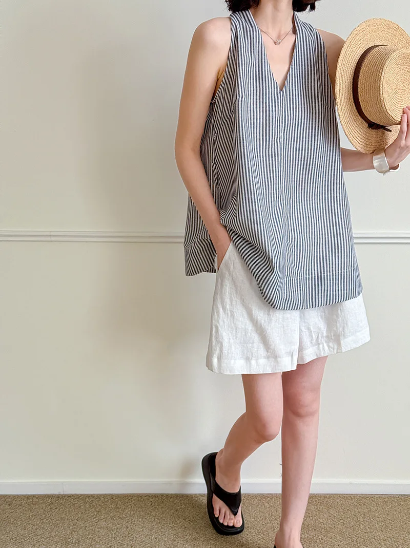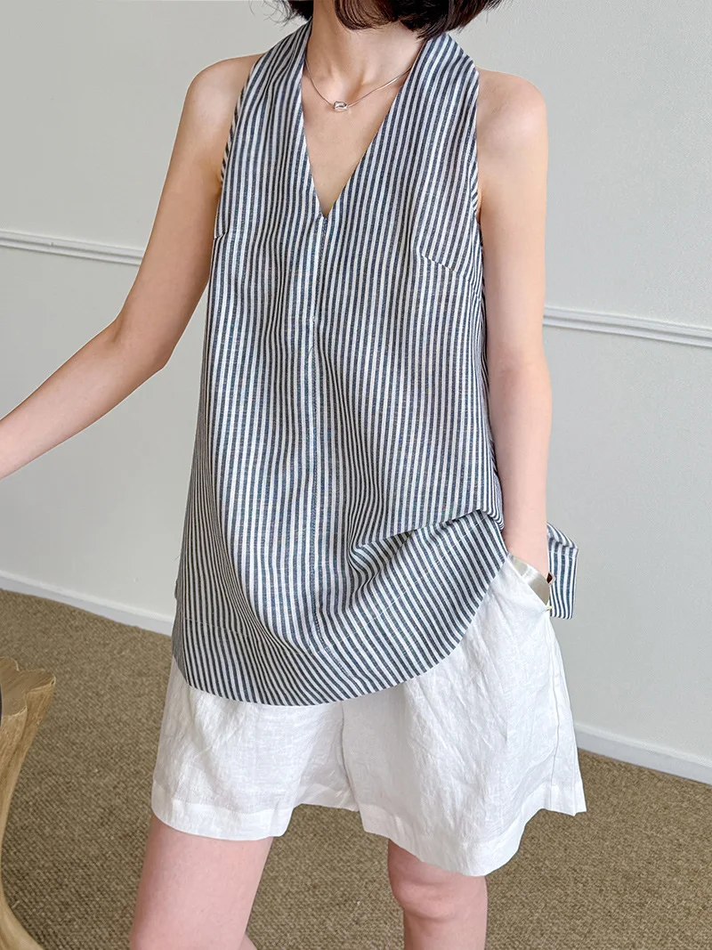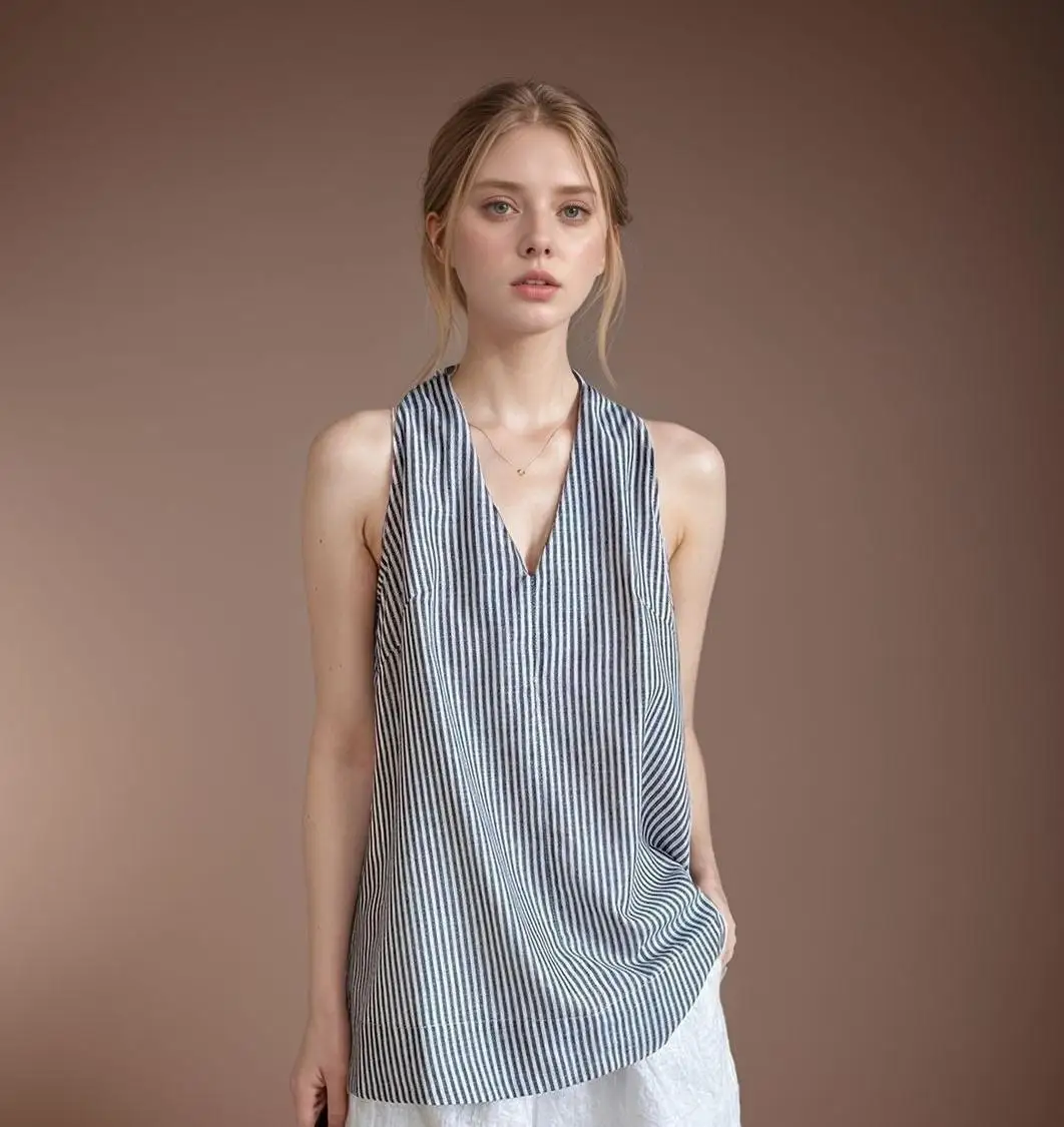 Elegant Linen-Blend Women's Casual Fashion Top Environmentally Friendly Fabric Woven with Front Logo Online Wholesale Supplier
