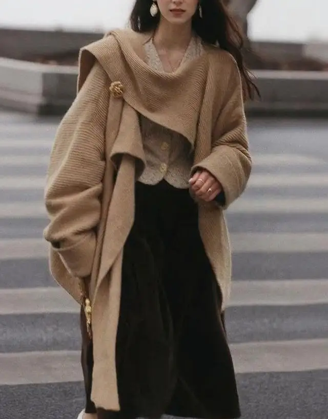 Elegant Polyester Solid Long Sleeve Ladies Poncho Jacket Casual Fashion Women's Coats Online Clothes Wholesale Supplier