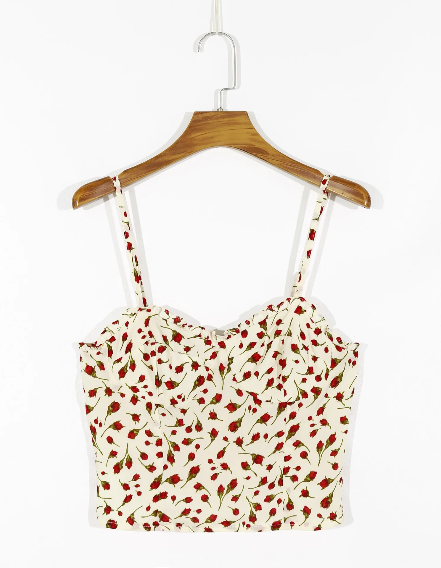 Elegant Women's Summer Casual Sleeveless Cami Top Square Neck Floral Shirred Ruffle Lettuce Trim Cute Woven Wholesale Supplier