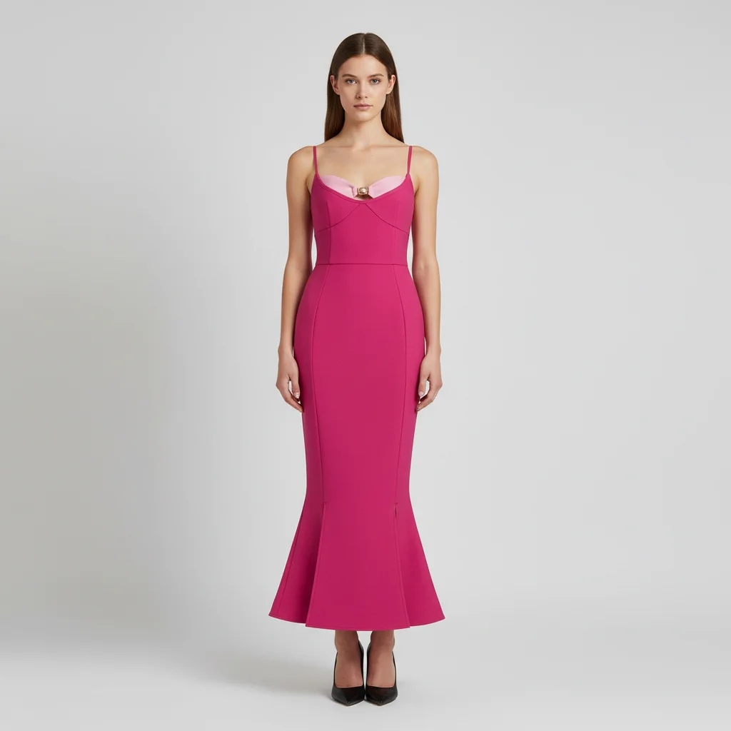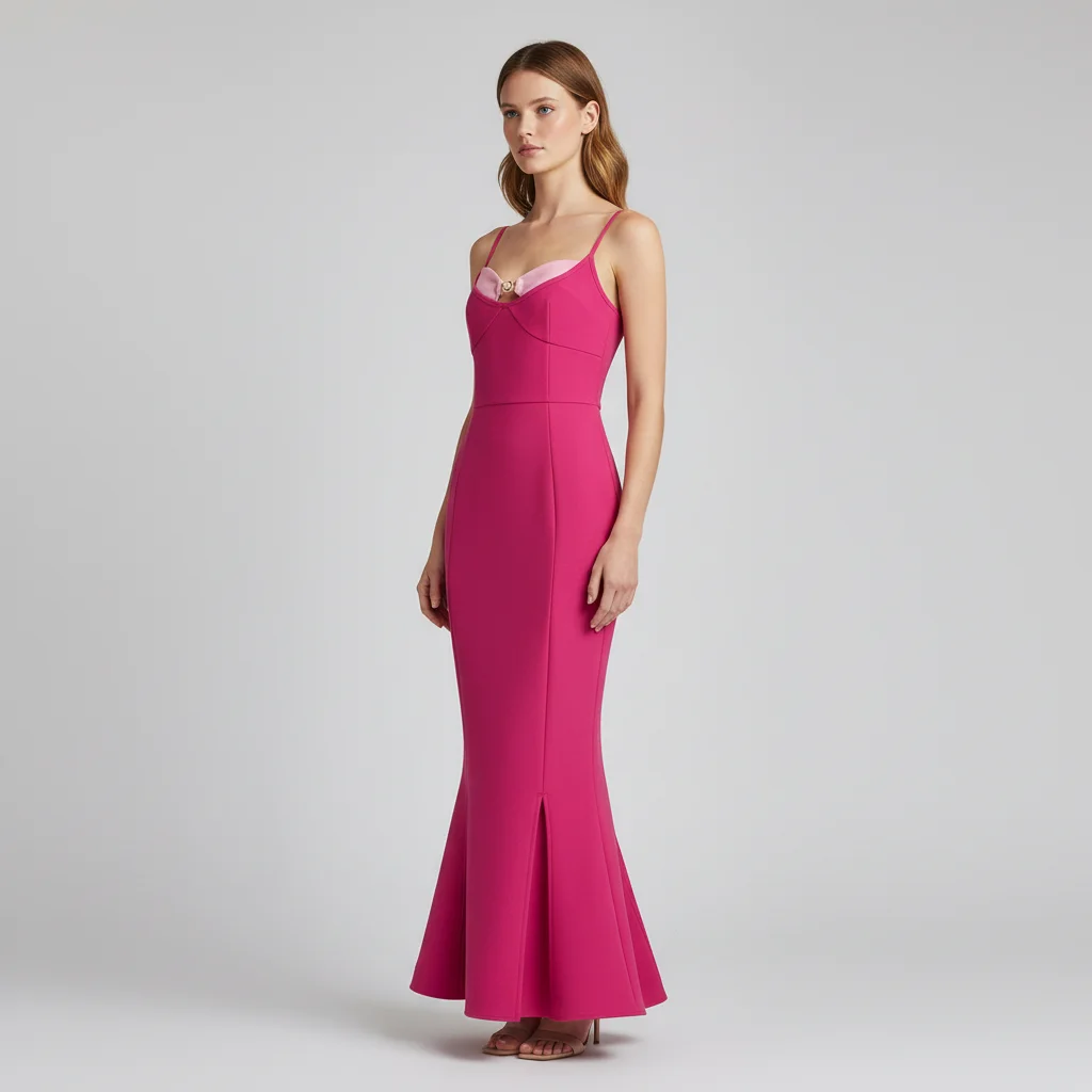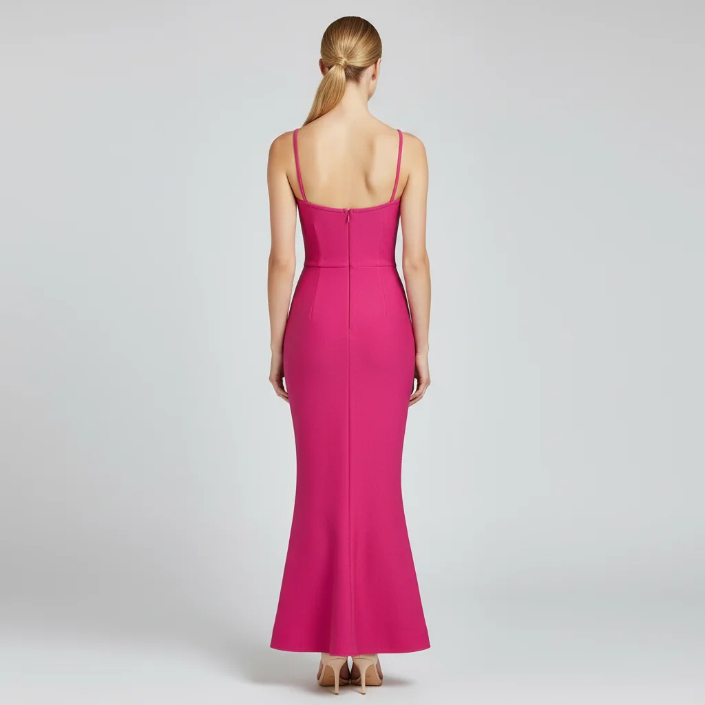 Sexy Fuchsia Spaghetti Strap Mermaid Maxi Dress Bodycon Long Dress Elegant Evening Party Wear