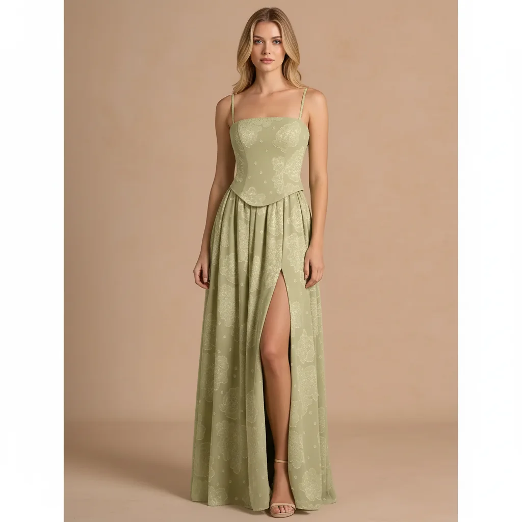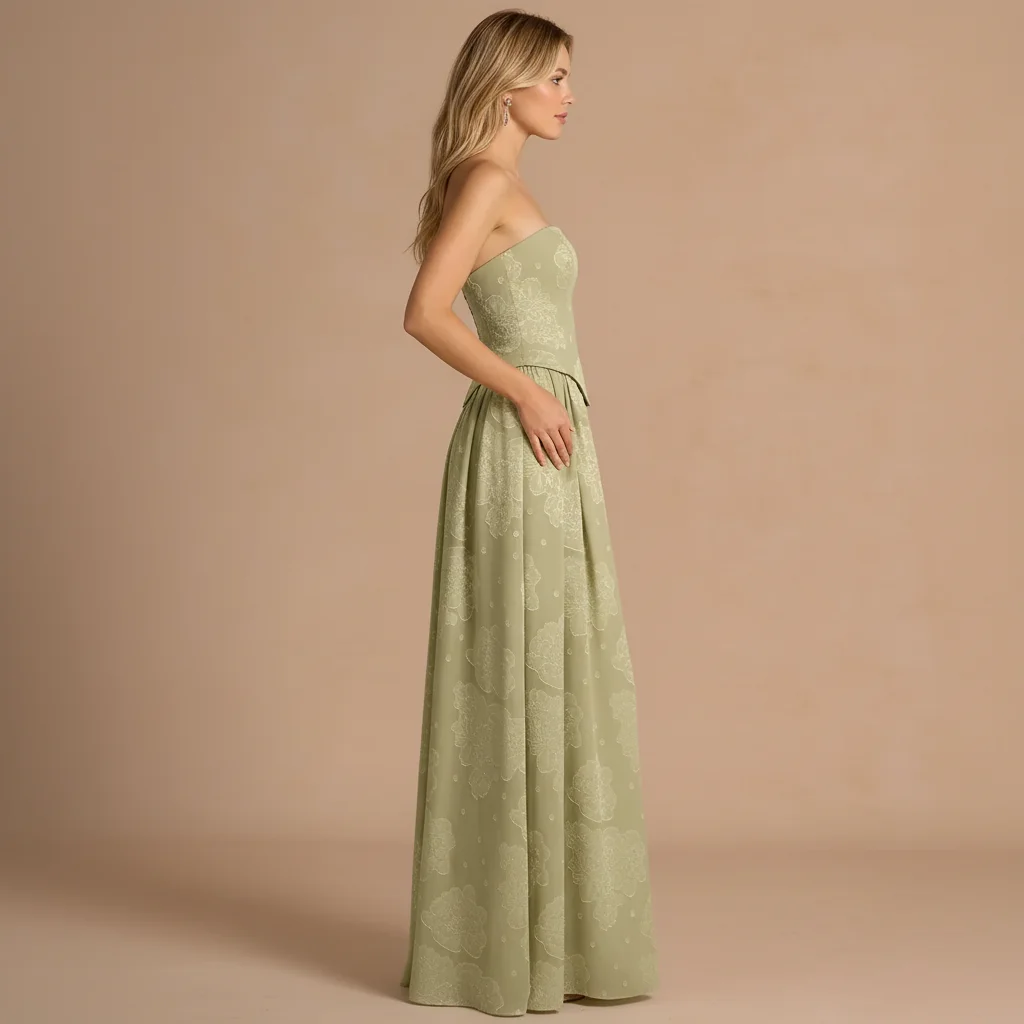 Sexy Green Strapless High Slit Maxi Dress Floral Bodycon Long Dress Elegant Evening Party Wear