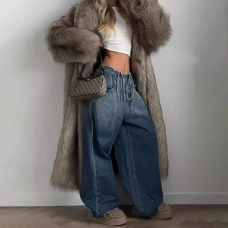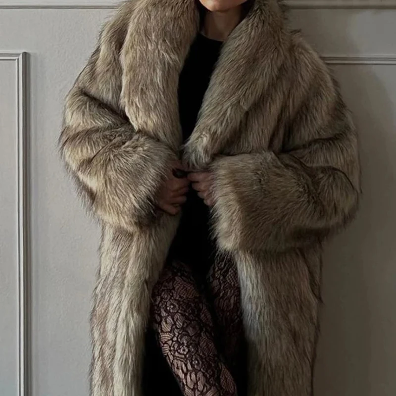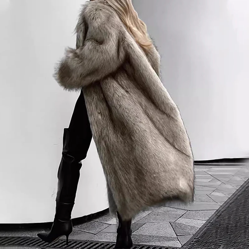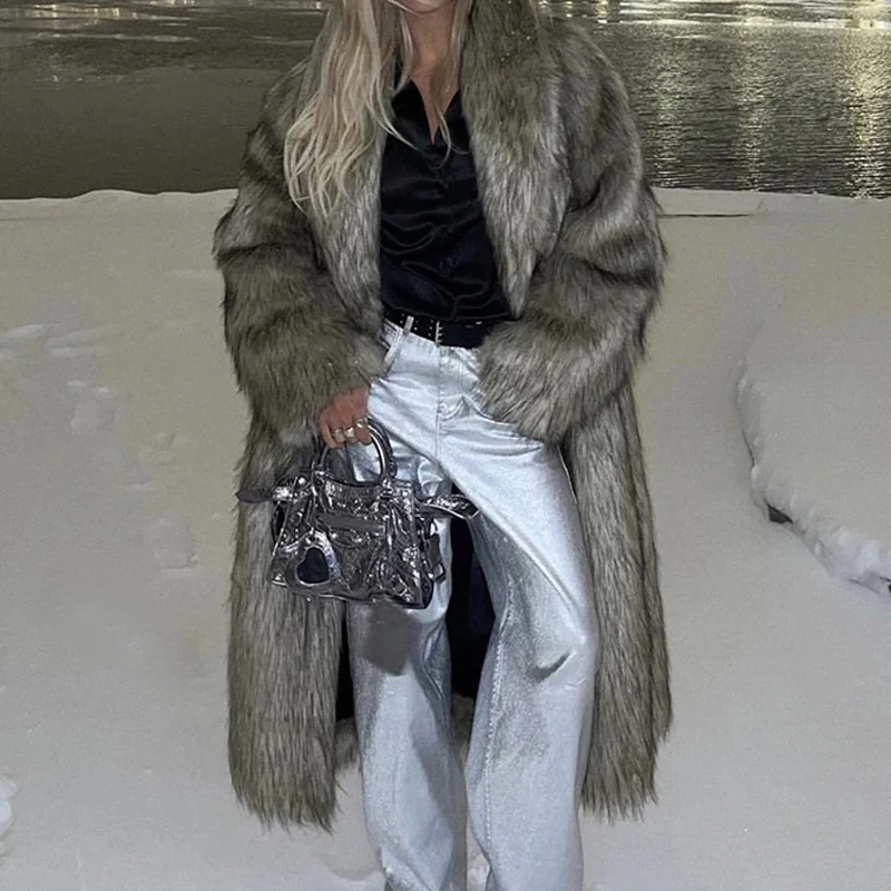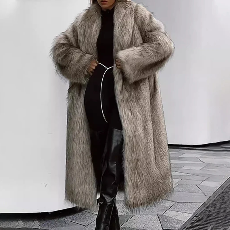 SF AL 24T291 Long Sleeves Women's Faux Fur Coats Long Winter Coat for Ladies Loose Eco-Friendly Women's Fur Coat
