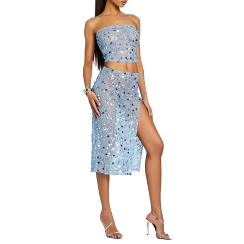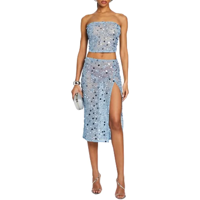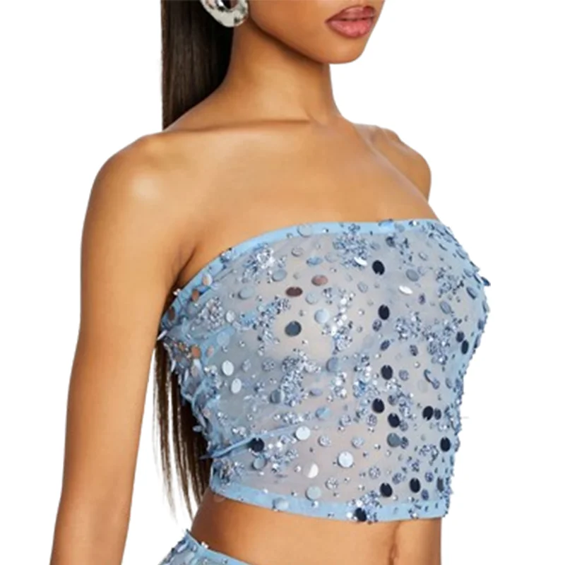 Factory Zipper Closure Strapless Sequins Tops Tube Top Sparkly Party Strapless Bra Sheer Embellished Top