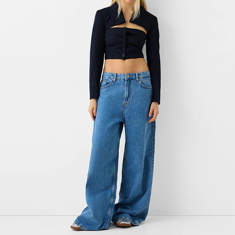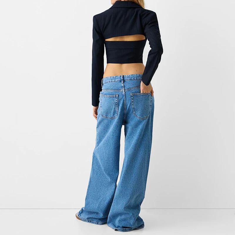 Fashionable Sexy Women's Office Wear Short Coats Long Sleeve Cut Out Women Pinstripe Blazer Slit Fit Lapel Ladies Blazers
