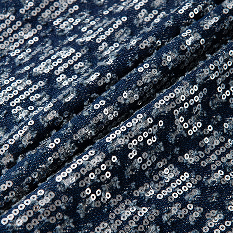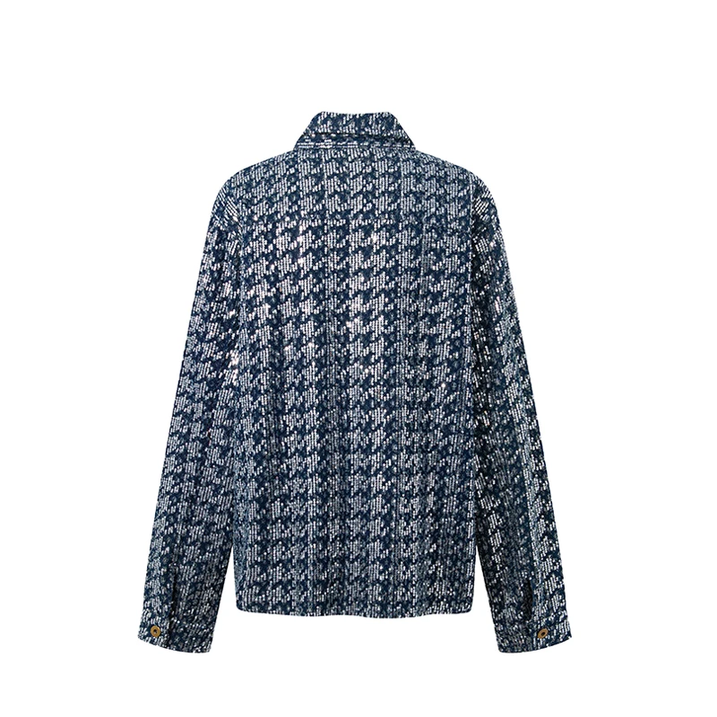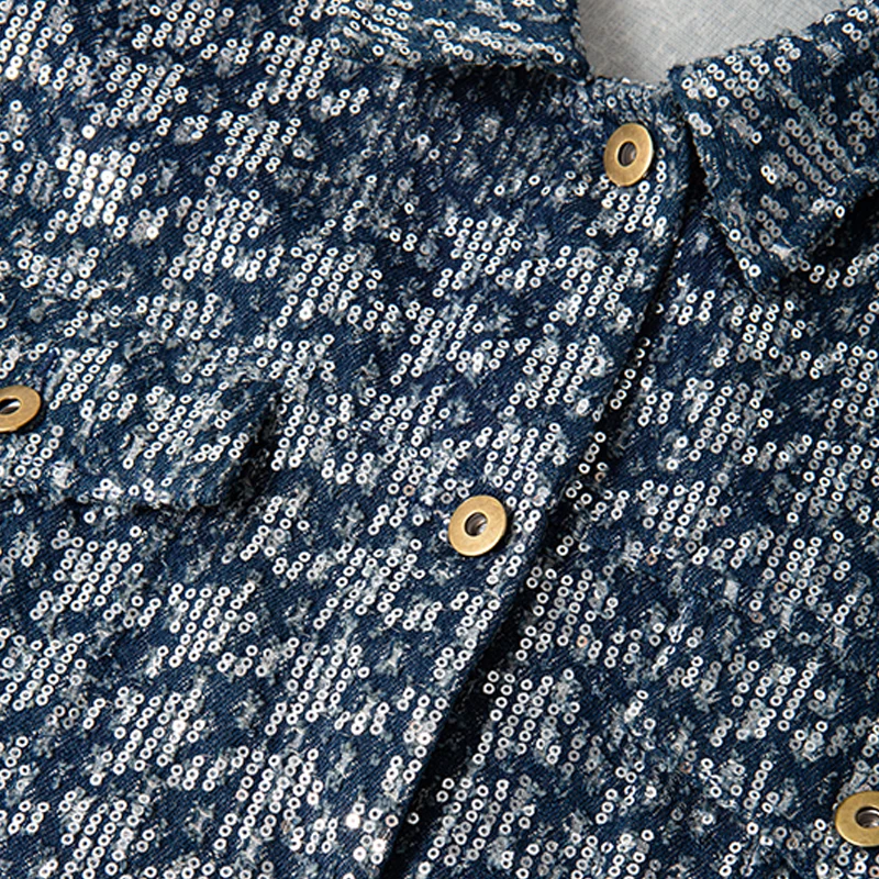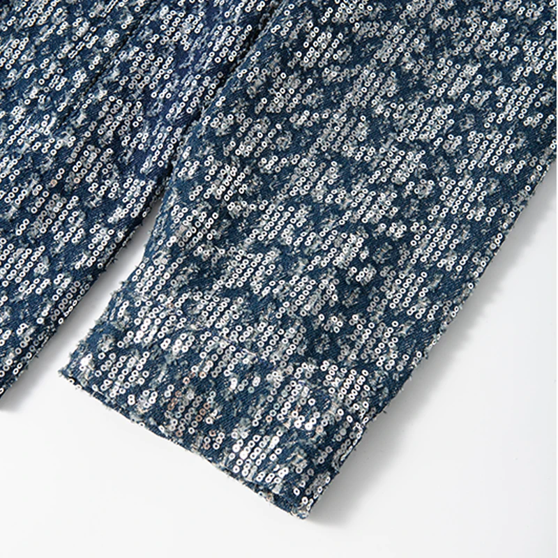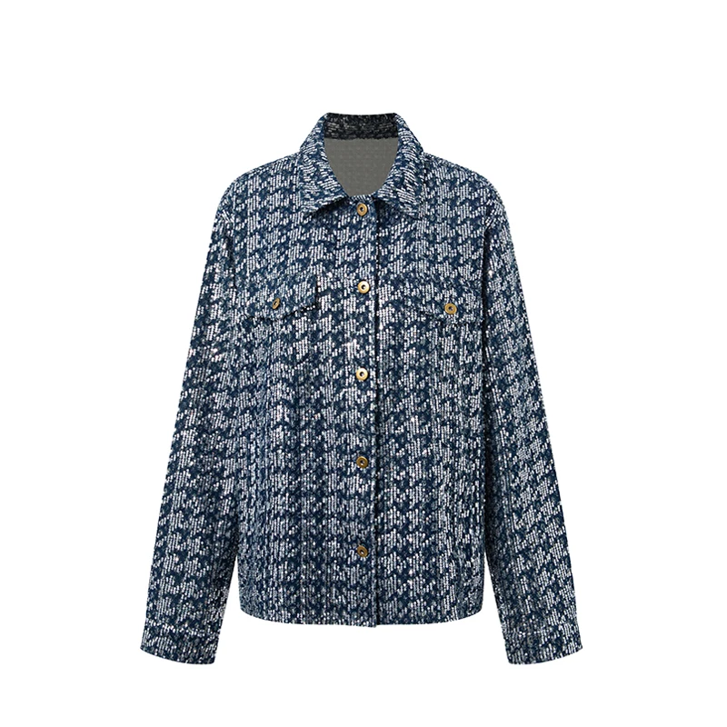 China Manufacturer Lapel Long Sleeve Denim Jacket Loose Mid-Length Coat Clothing for Women Denim Sequined Jacket