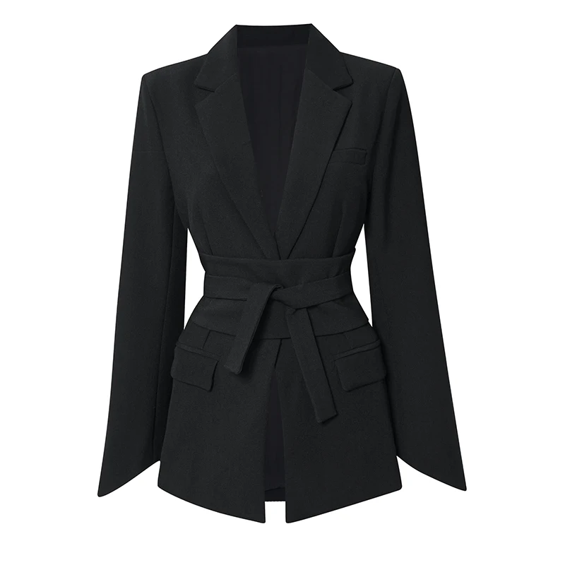 AL 24T104 Elegant Pointed Sleeves Blazer for Women Single Button Women's Blazers With Belt for Office Flap Pockets Womens Suits
