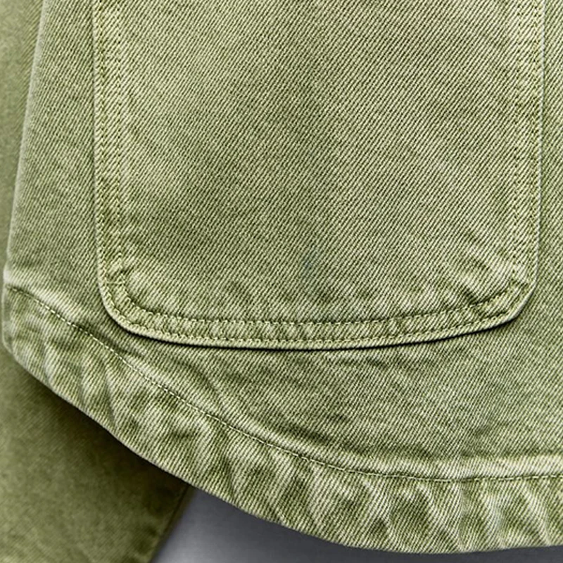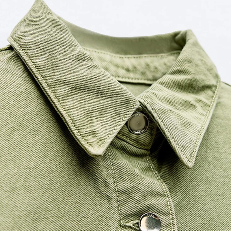 Women Lapel Collar Denim Jacket Washed Long Sleeves Cotton Denim Jacket Loose Metal Button Women Breathable Denim Jackets