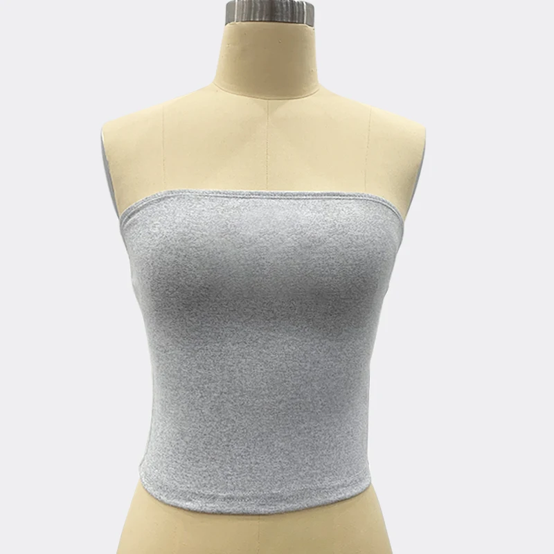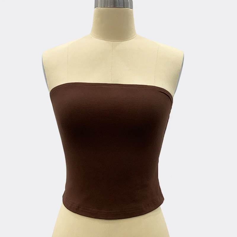 SF AL 24T125 Women Crop Top Solid Color Strapless Sheath Slimming Stretchy Tank Top Sleeveless Women's Tube Top