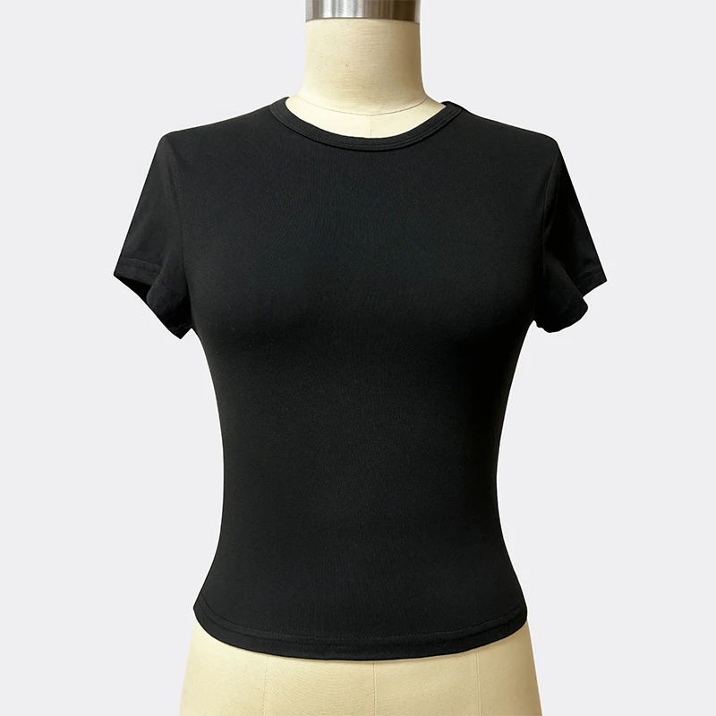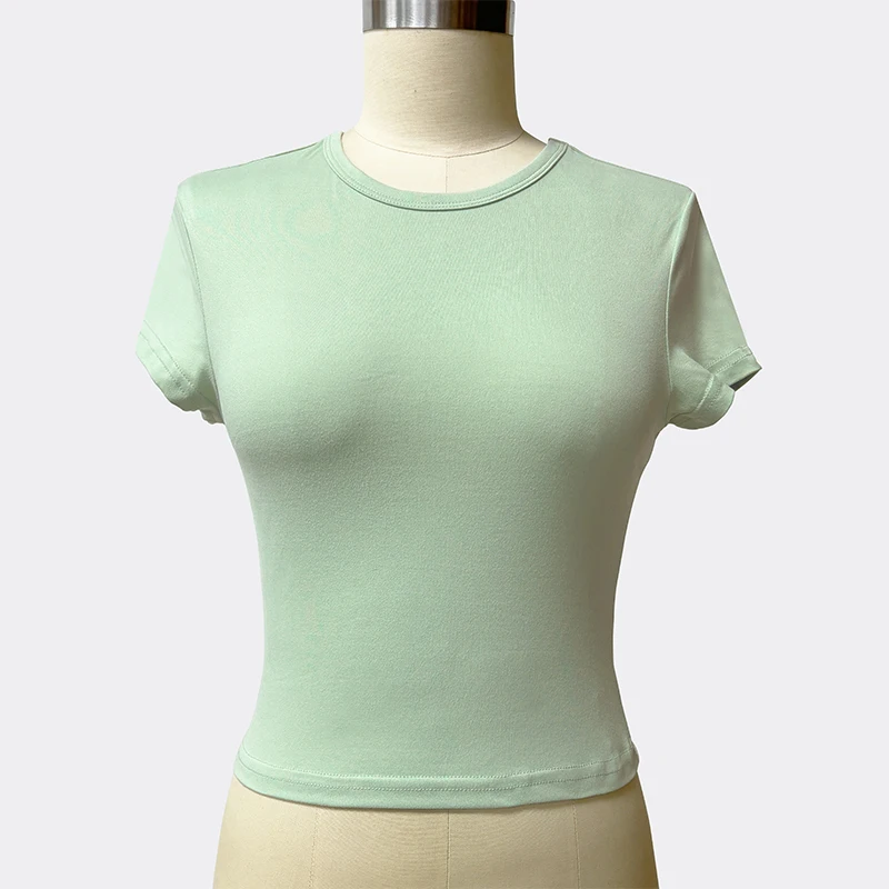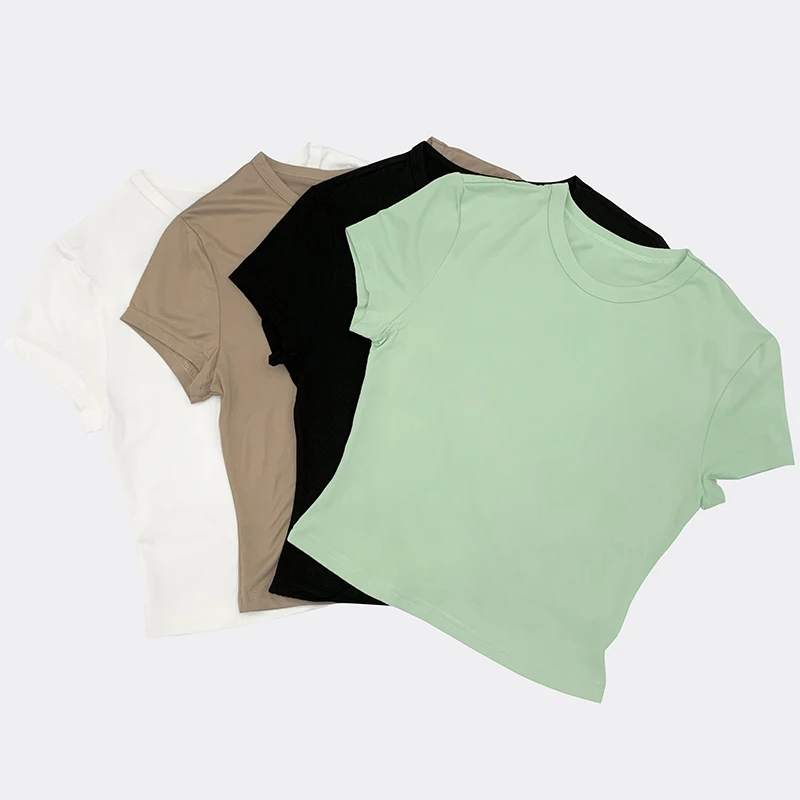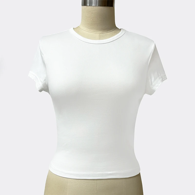 SF AL 24T127 Solid Short-Sleeved Women's T-Shirt Breathable O-Neck Woman T-Shirt White Women Crop Top