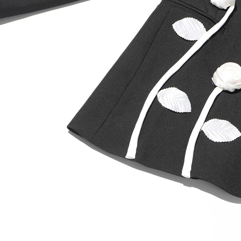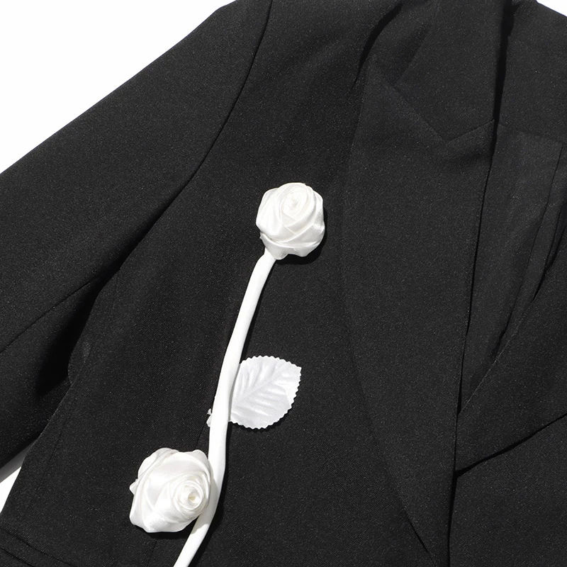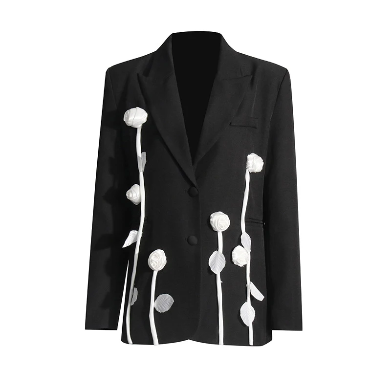 SF Embroidery Women's Suits Office Polyester Flower Patchwork Slim Fit Long Sleeve Thin Suit Single-Breasted Ladies Blazer Suit