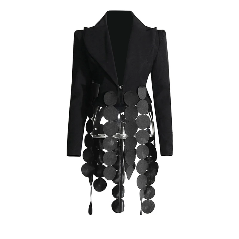 SF AL 24T177 Polyester Black Deep V One Button Women Suit Patchwork Round Piece Design Suit Lapel Lady Blazers
