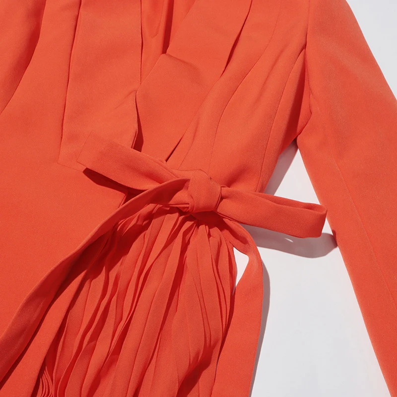 SF AL 24T198 Orange Irregular Women's Suit Individualized Pressure Pleat Lace-Up Solid Color Suit Ladies Fashionable Blazer