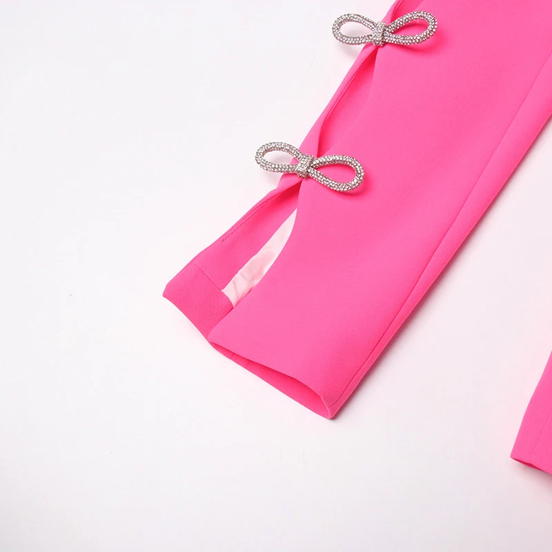 SF AL 24T194 Blazer Jacket for Women Cutout Bow Detail Rhinestone Sleeve Pearl Belt Suit Lapel Polyester Women Suits