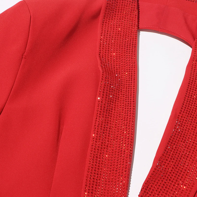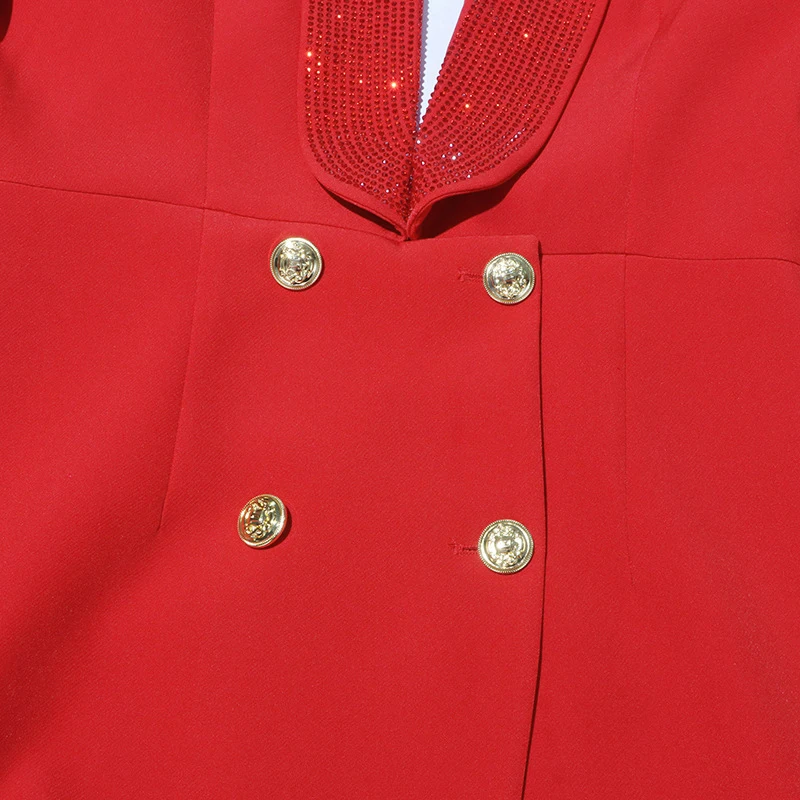 SF AL 24T222 Deep-V Women Jacket Blazer Heavy Duty Hot Stamping Design Ladies Suit Red Elegant Women Suits