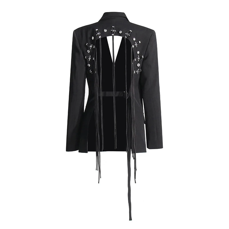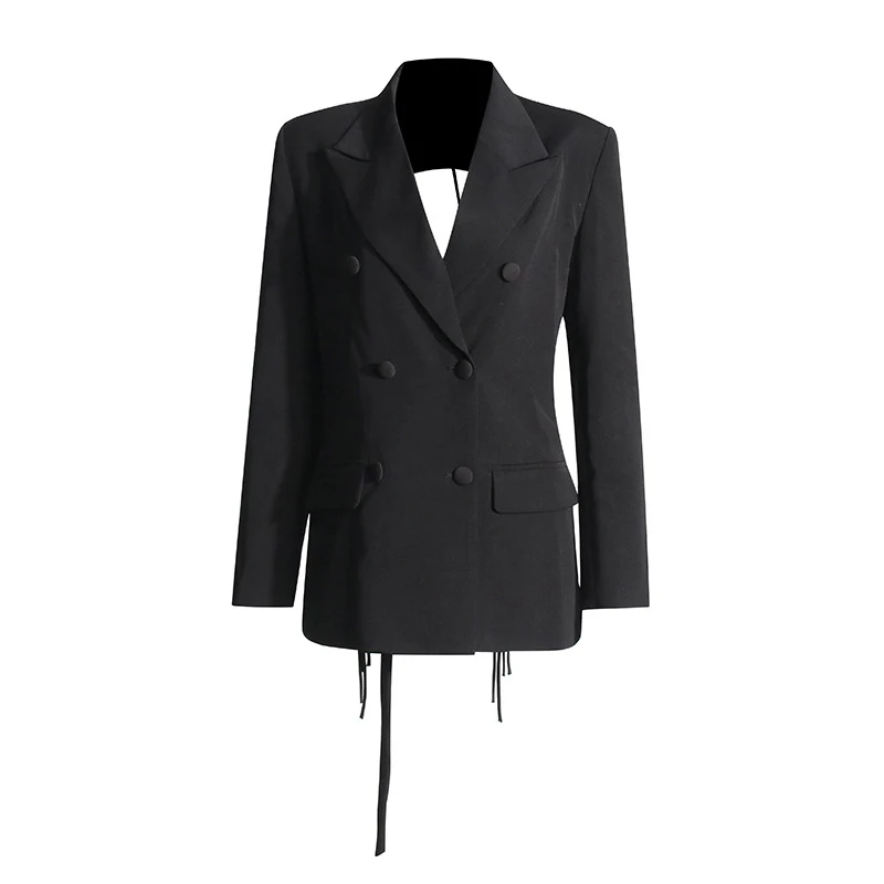 SF AL 24T209 Black Women's Blazer Coats Cutout Backless Flutter Design Suit Double Breasted Solid Color Woman Business Suits