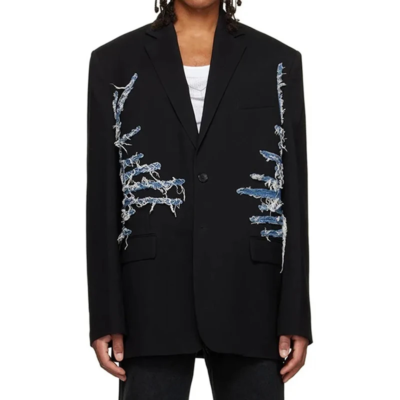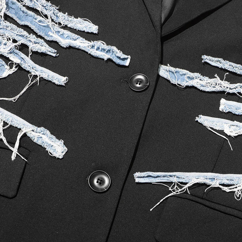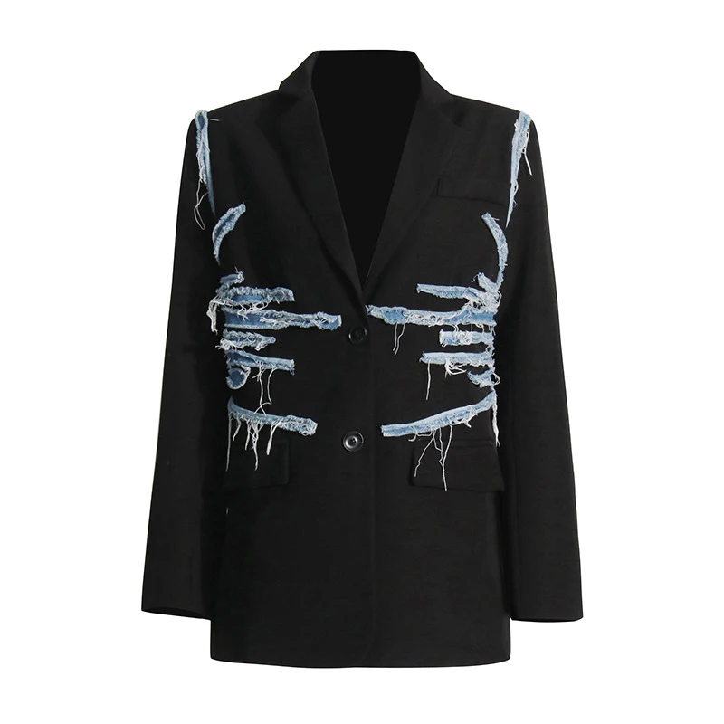 SF AL 24T238 Women's Suits Office Vintage Denim Patchwork Suit Color Clashing Design Loose Single-Breasted Woman Blazer