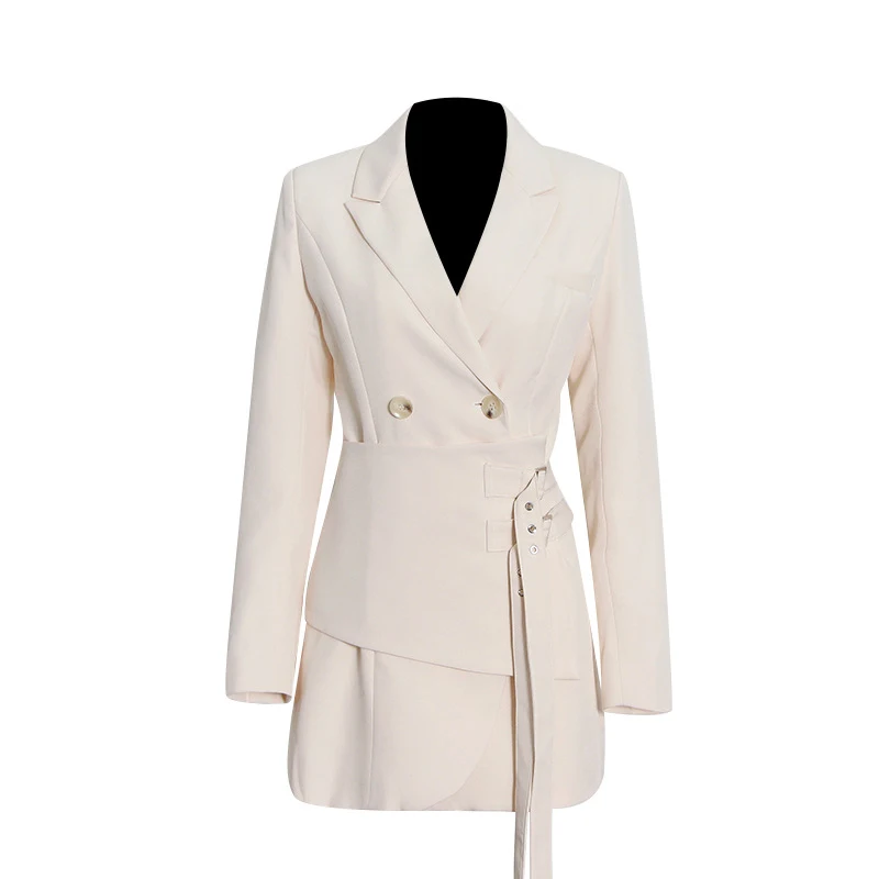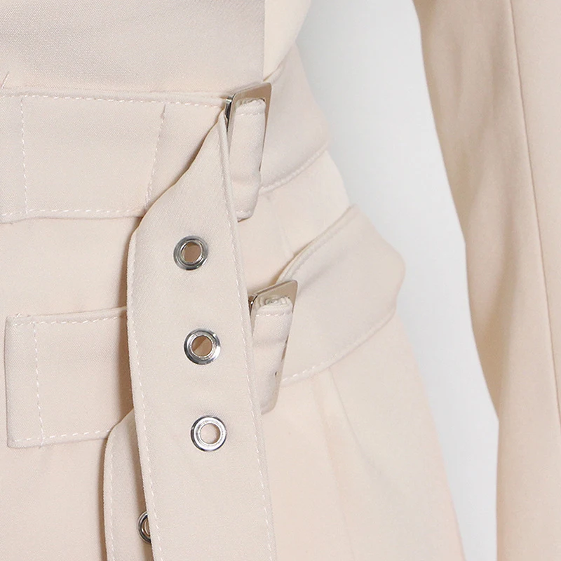 SF AL 24T268 Patchwork Woman Blazer Polyester Elegant Women Suits Adjustable Waist Lapel Beige Women Office Blazer