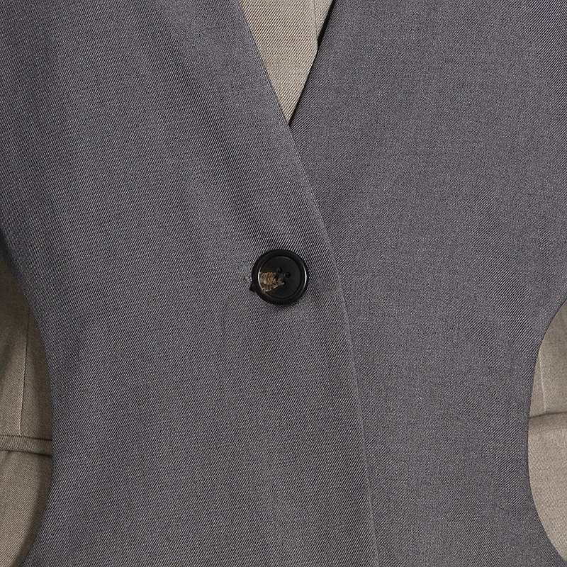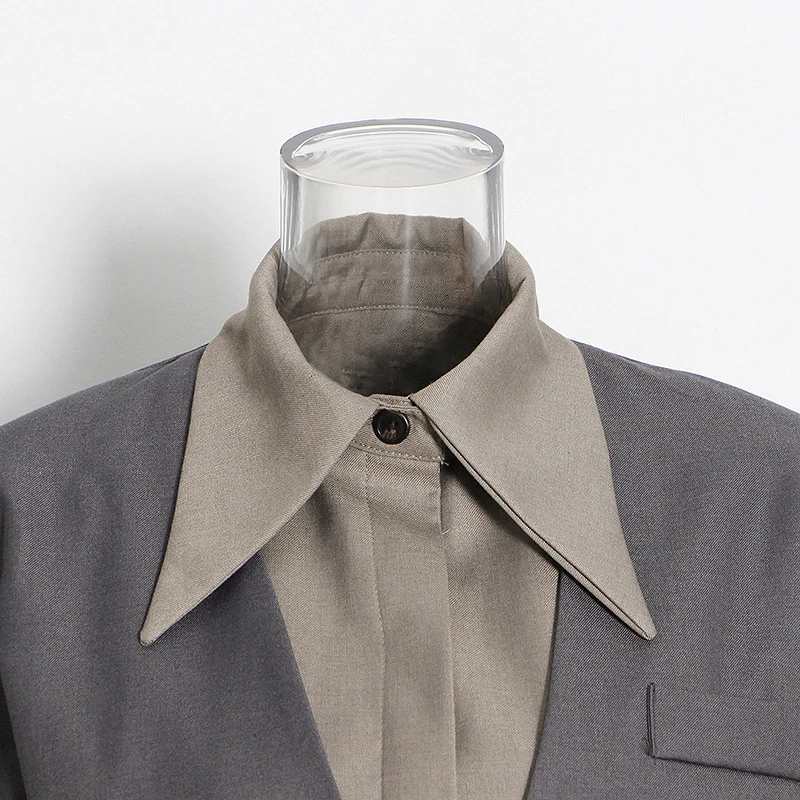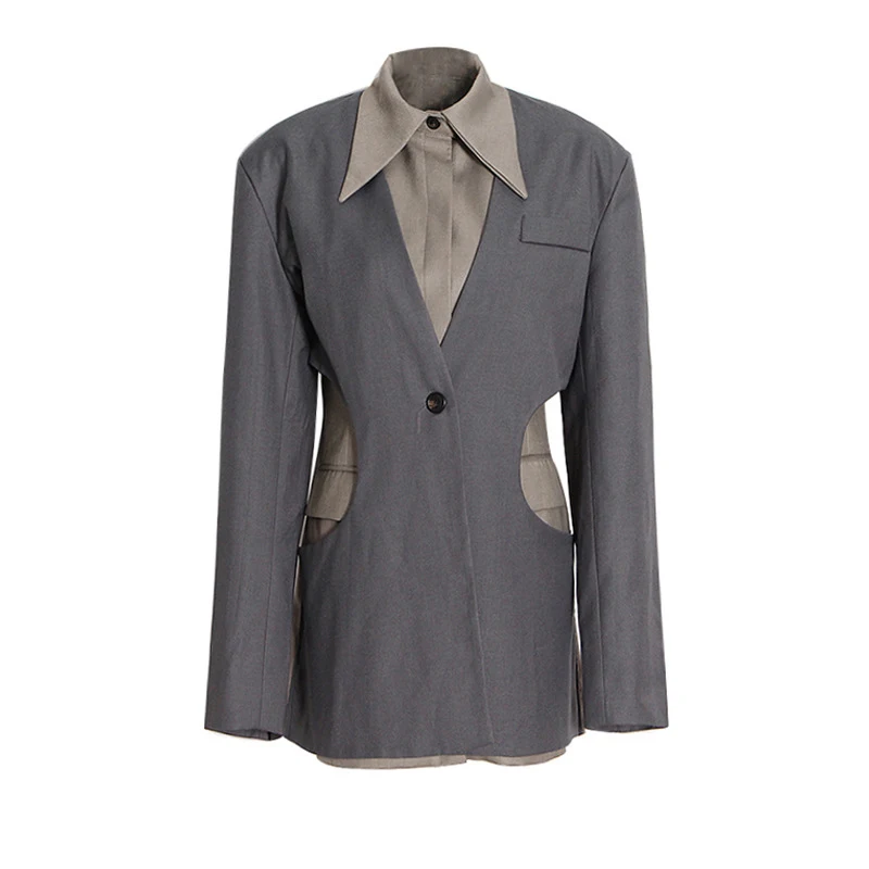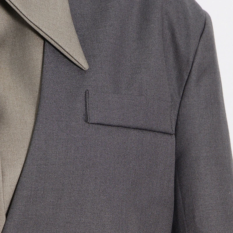 SF AL 24T266 Lapel Women's Suits and Blazers Women's Patchwork Colour Blocking Long Suit Polyester Gray Woman Blazer