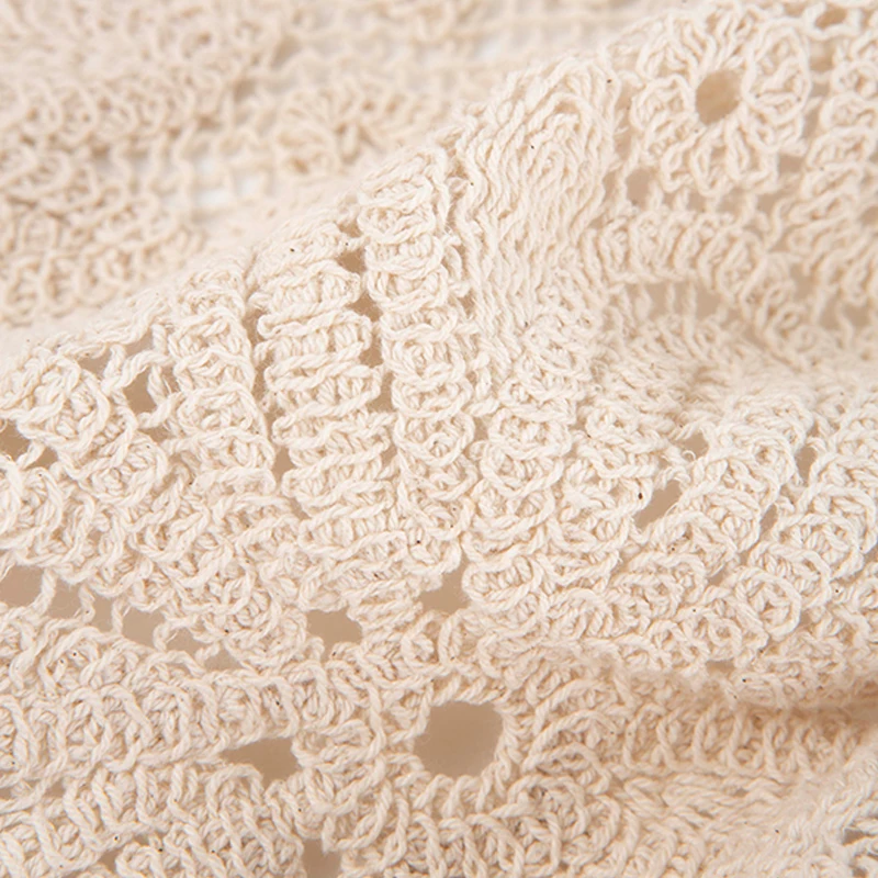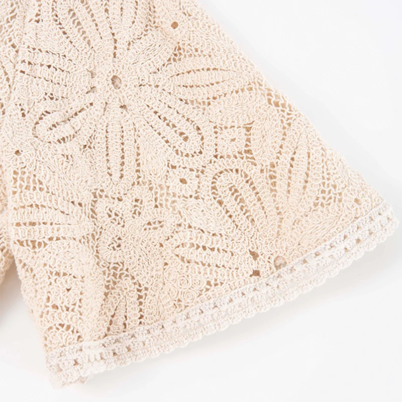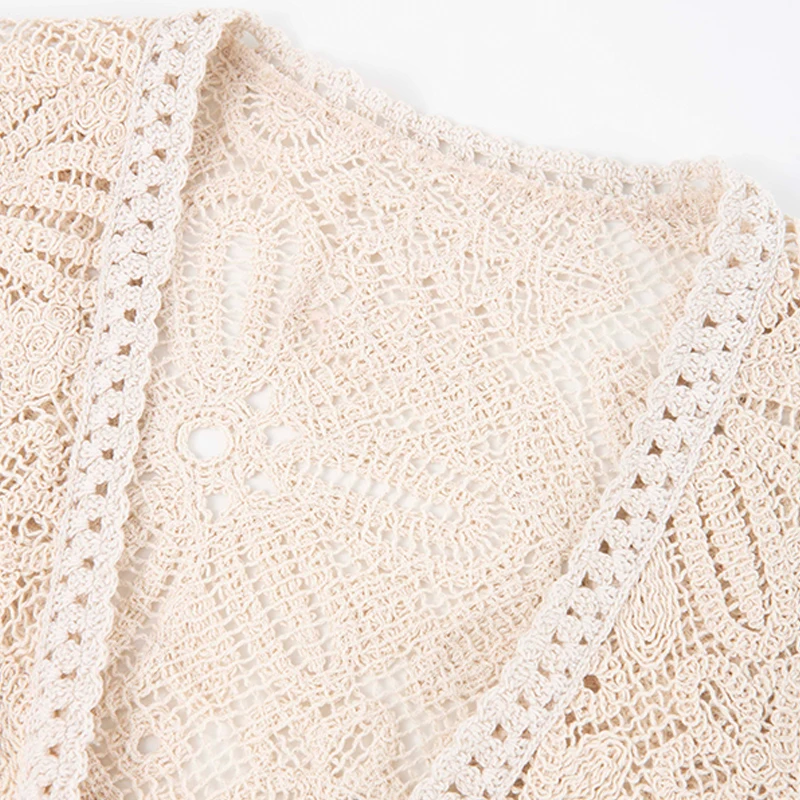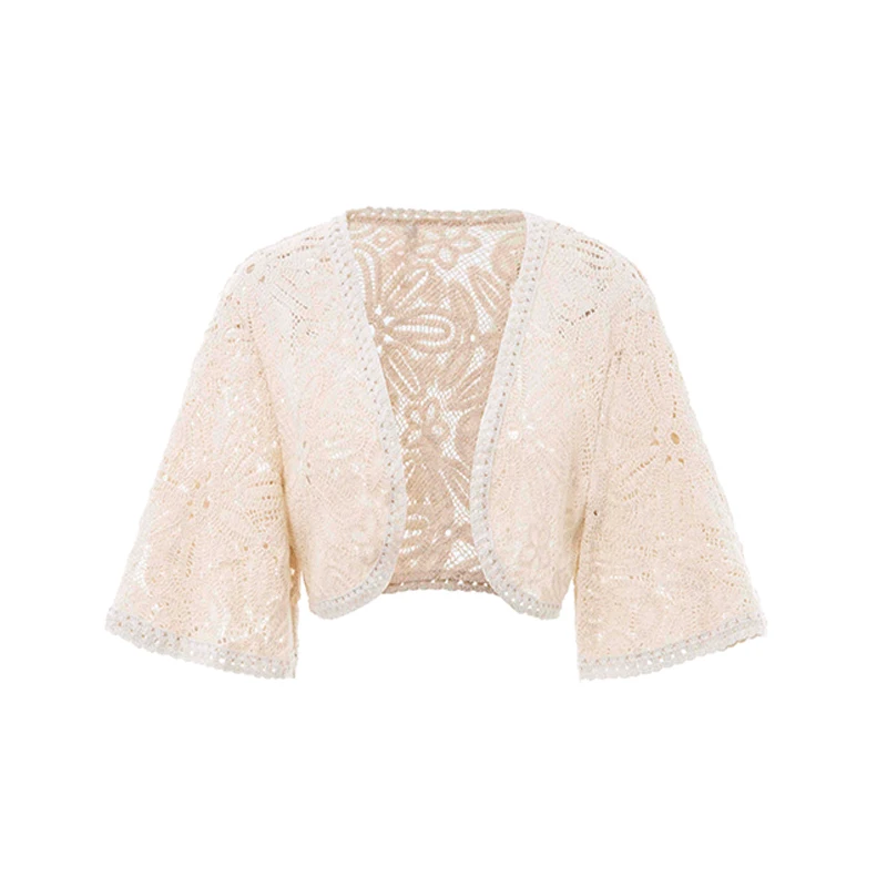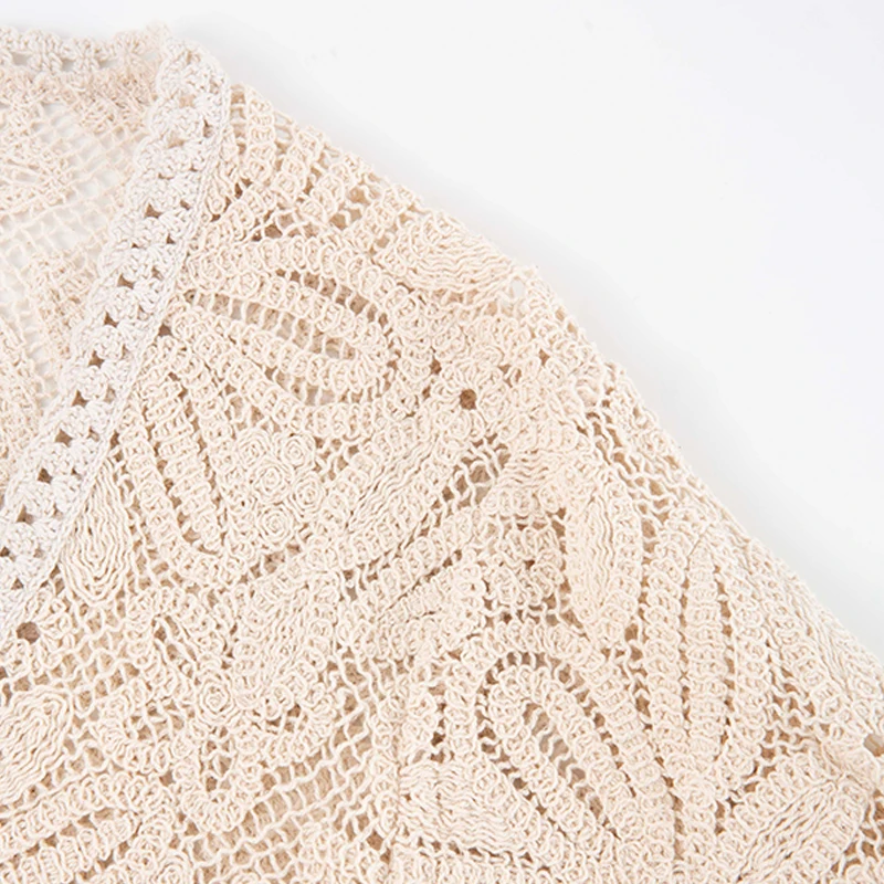 SF AL 24T290 Women Hollow Out Crochet Knit Cardigan Vintage V-Neck Ladies Outerwear Flare Sleeves Women Cardigan