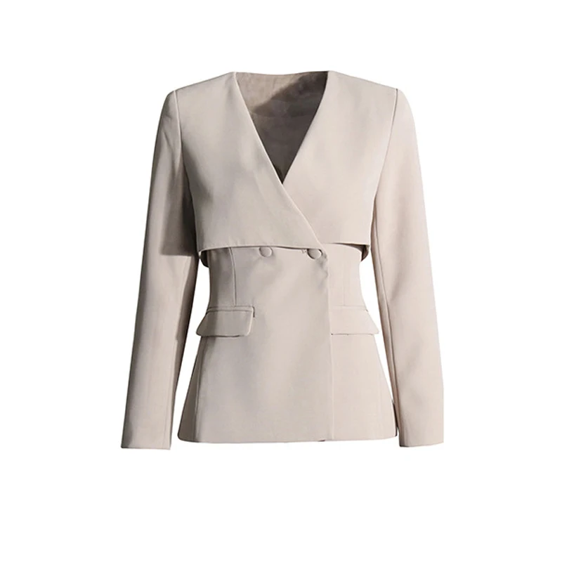 SF AL 24S030 Polyester Blazers Set for Women V-Neck Women's Blazer High-Waisted Pressed Pleated Wide-Leg Pants Women Suits Set