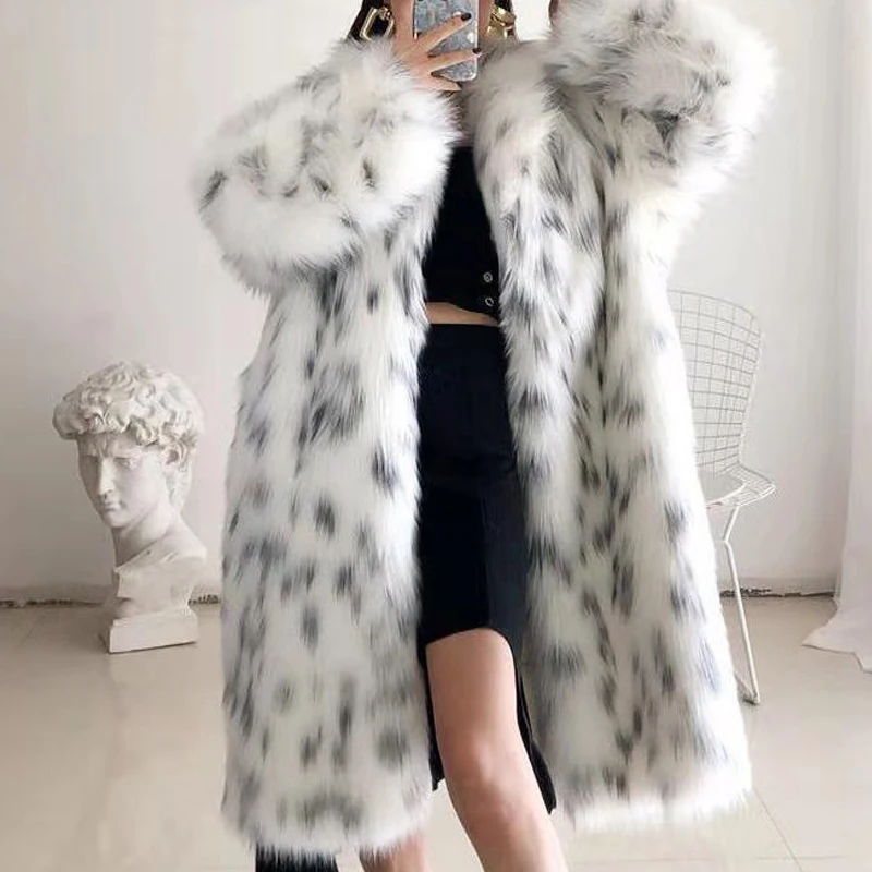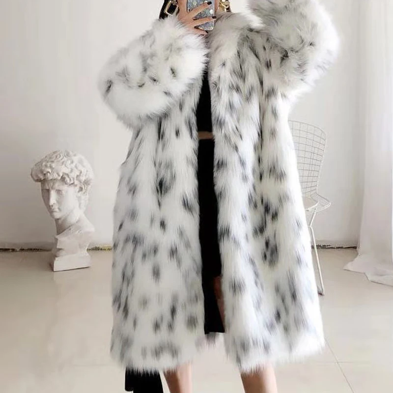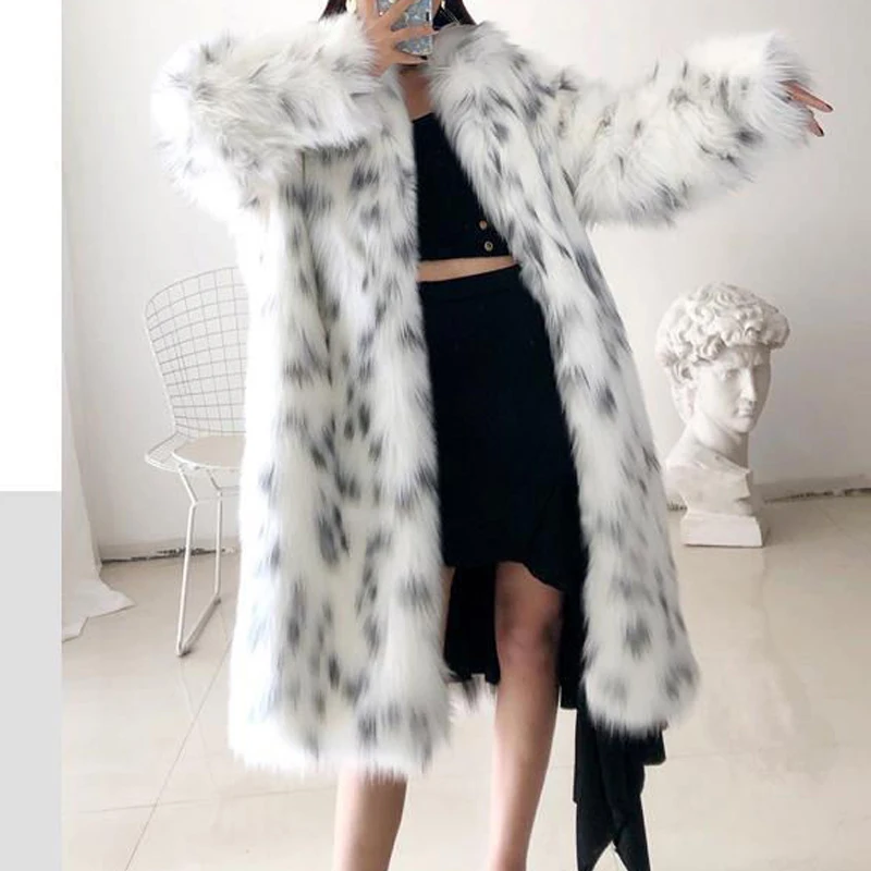 Turndown Collar Women Faux Fur Coat Long Sleeve Faux Fur Women's Jacket Polyester Women Trench Coat