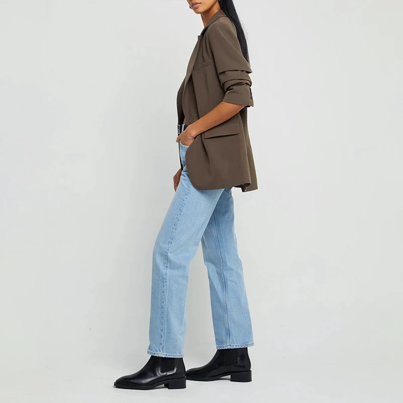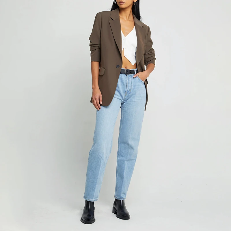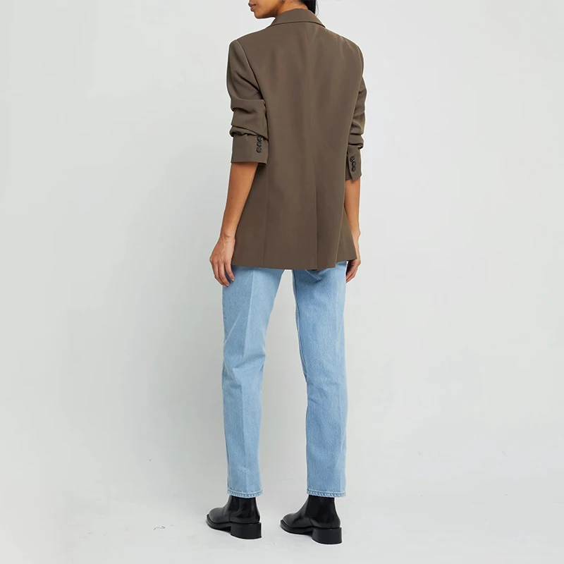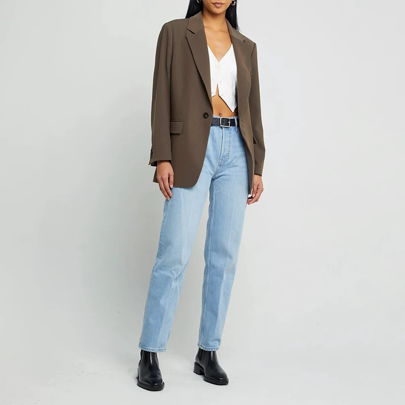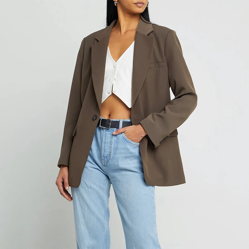 Soild Color Oversized Blazer Front Button Polyester Women Suits Office Formal Long Sleeve Women's Business Suits