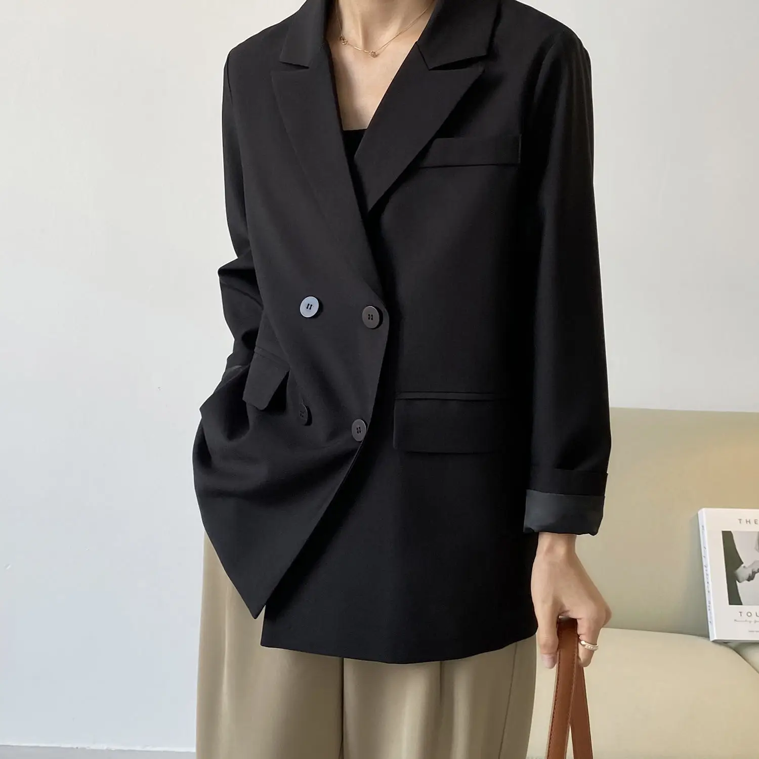 ZYHT 35239 Women's Elegant Black Velvet Blazer with White Ruffled Trim Peplum Hem & Long Puff Sleeves Chic Formal Jacket