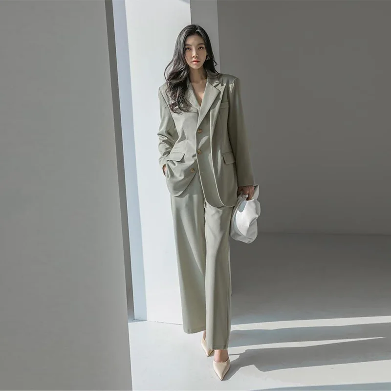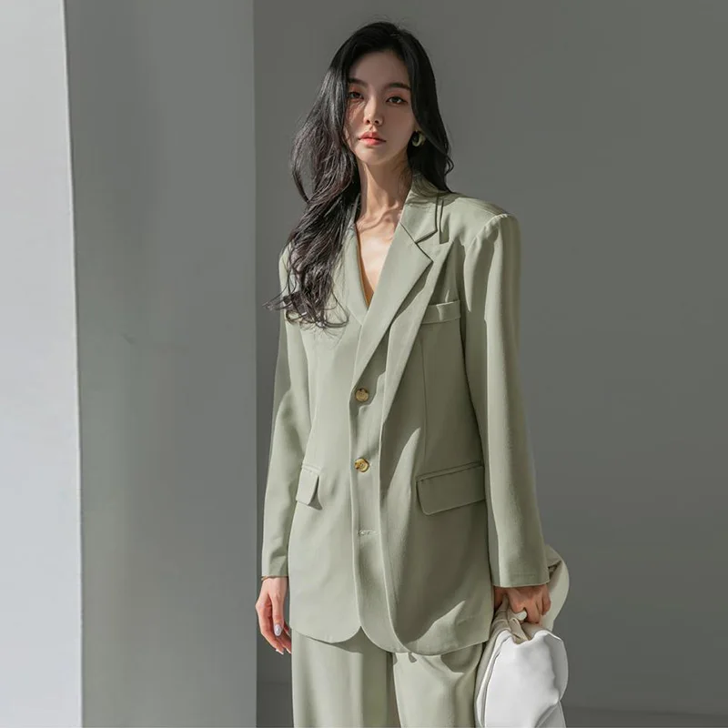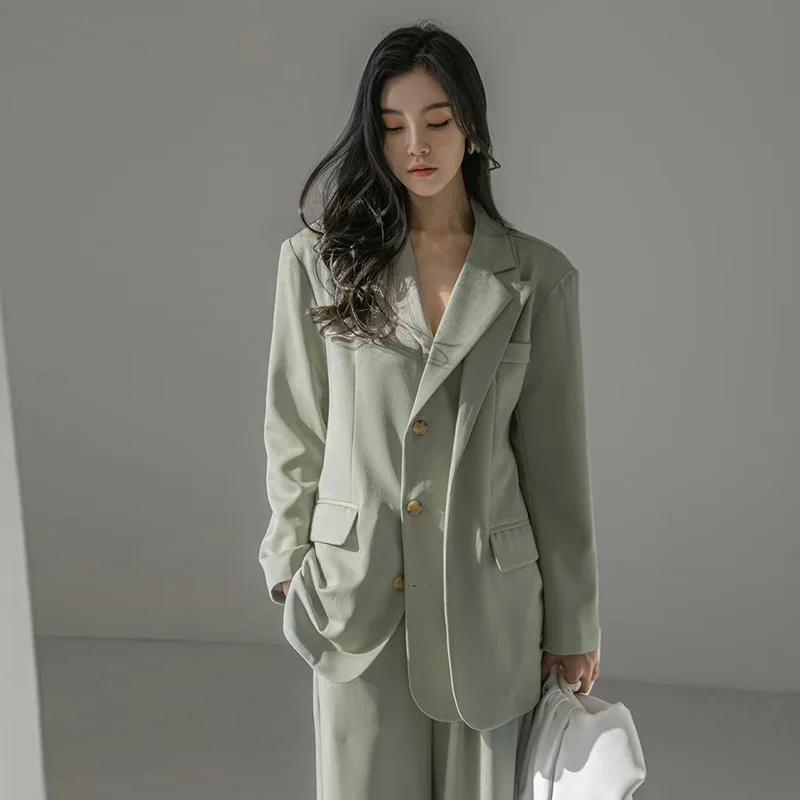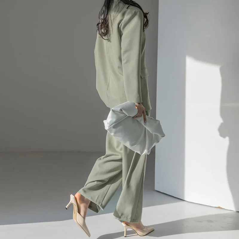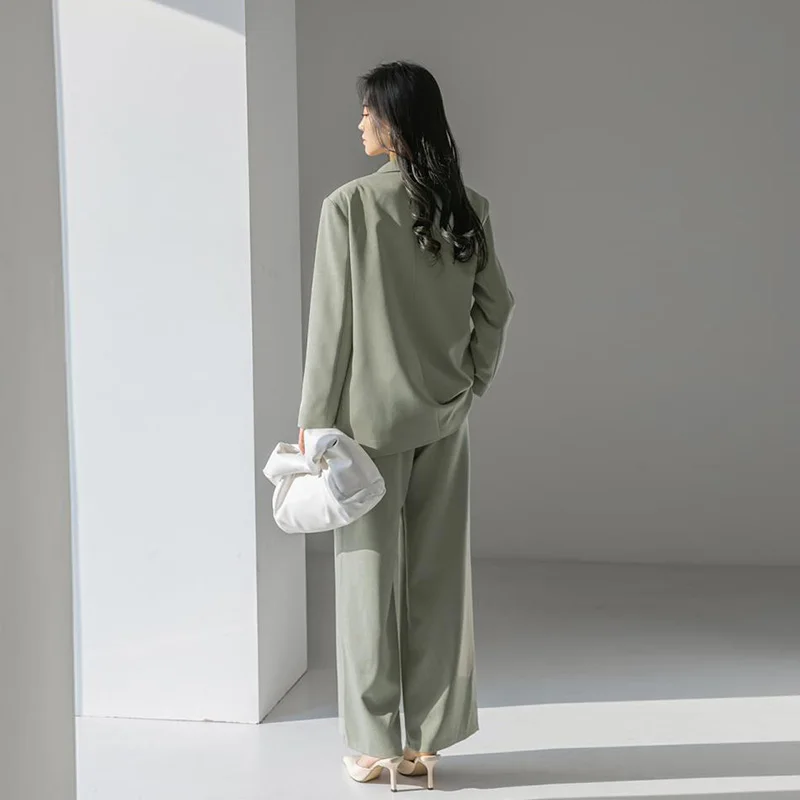 Custom Korean Edition Mint Green Suit blazer Fashion Coat Elastic Waist Trousers Two Pieces One Set blazer