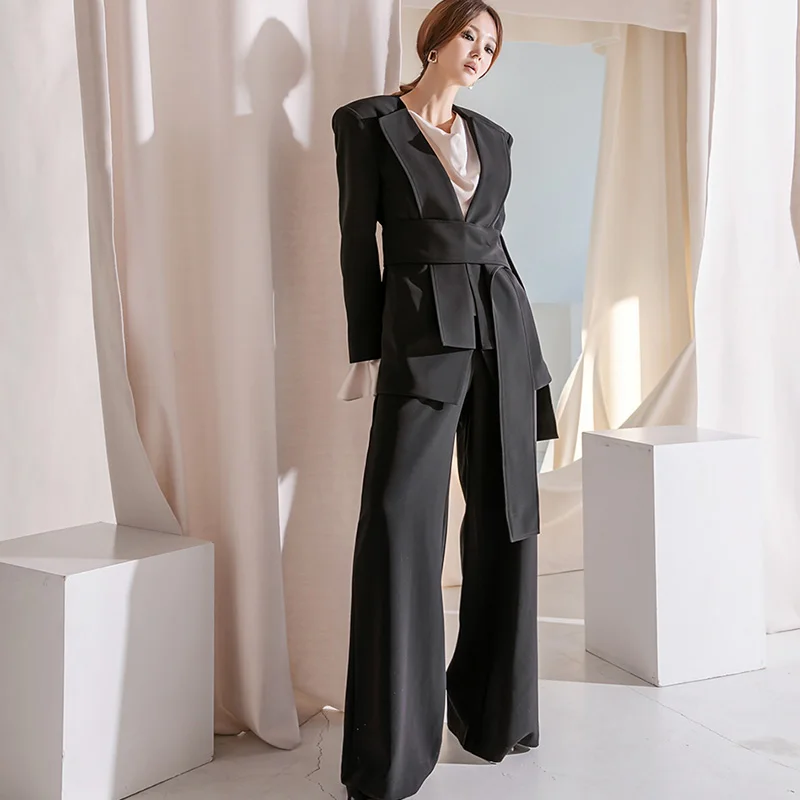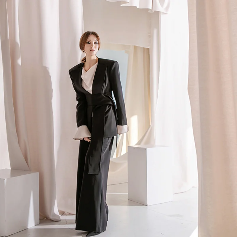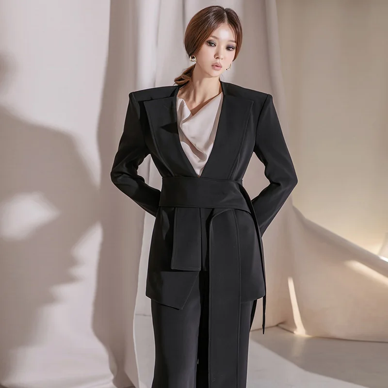 Custom Korean Version of Fashion OL Black Coat Slim Suit With Pants Set Elegant Temperament blazer Suit