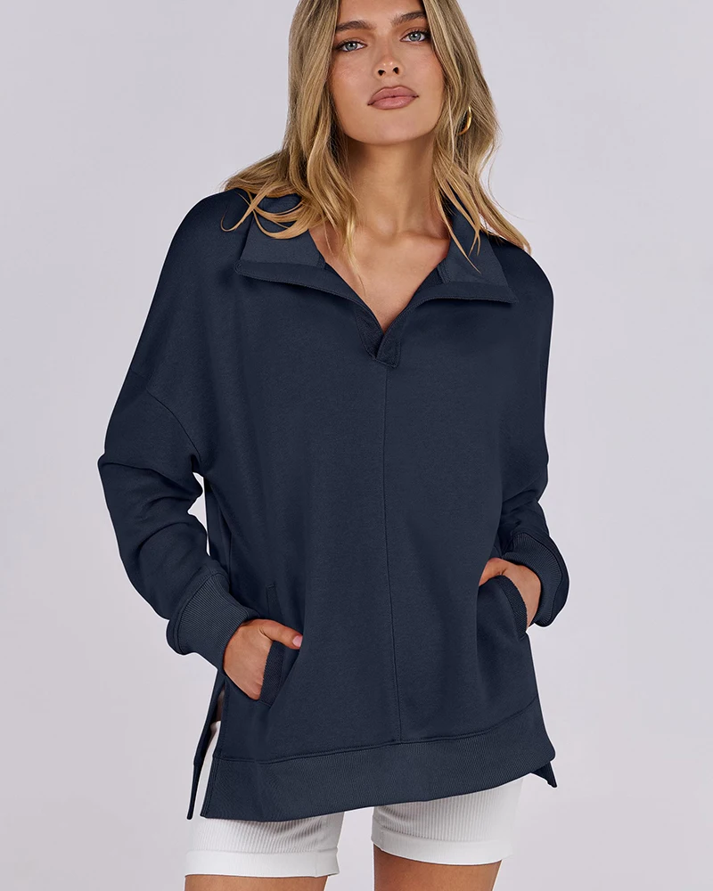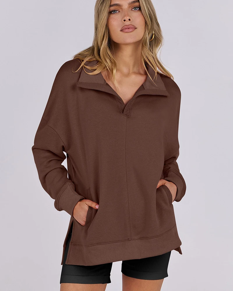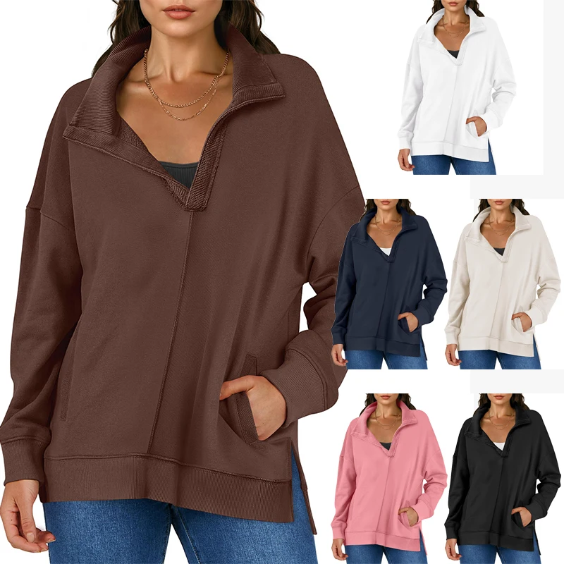 Factory Wholesale Oversized Lapel Pullover Asymmetrical Hem Side Slit 2026 Autumn Fashion Sportshirts Outdoor Lounge Hoodies