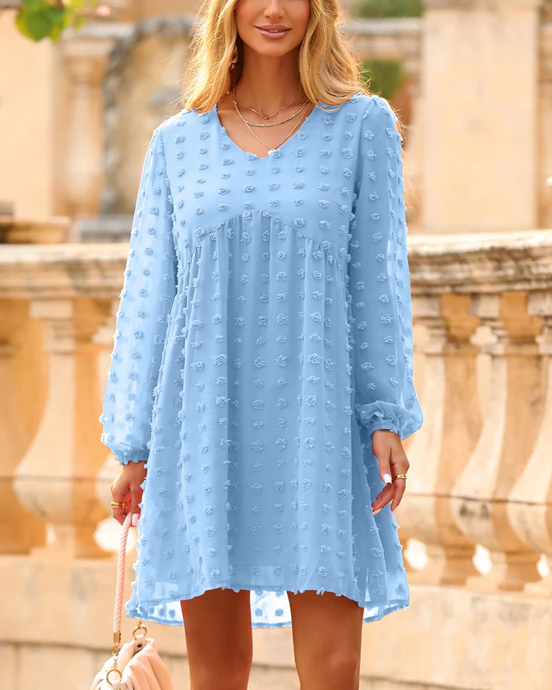 Factory Direct Polka Dot Women's Casual Dresses Puff Sleeve High Waist Straight Cut Babydoll Matching Vestidos Sweet Button