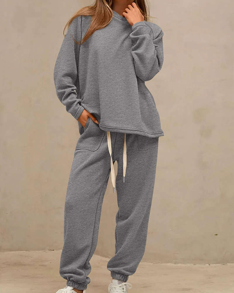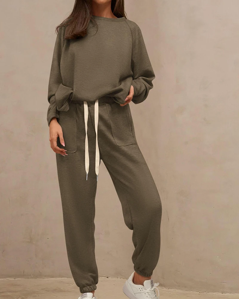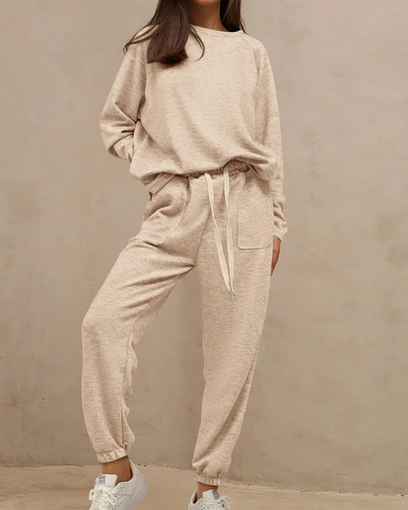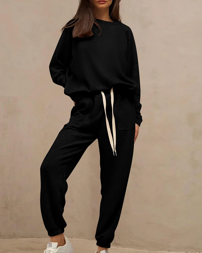 Autumn New Women's 2-Piece Tracksuit Set Crew Neck Sweatshirt + Elastic Waist Jogger Pants Casual Oversized Sportwear for Daily