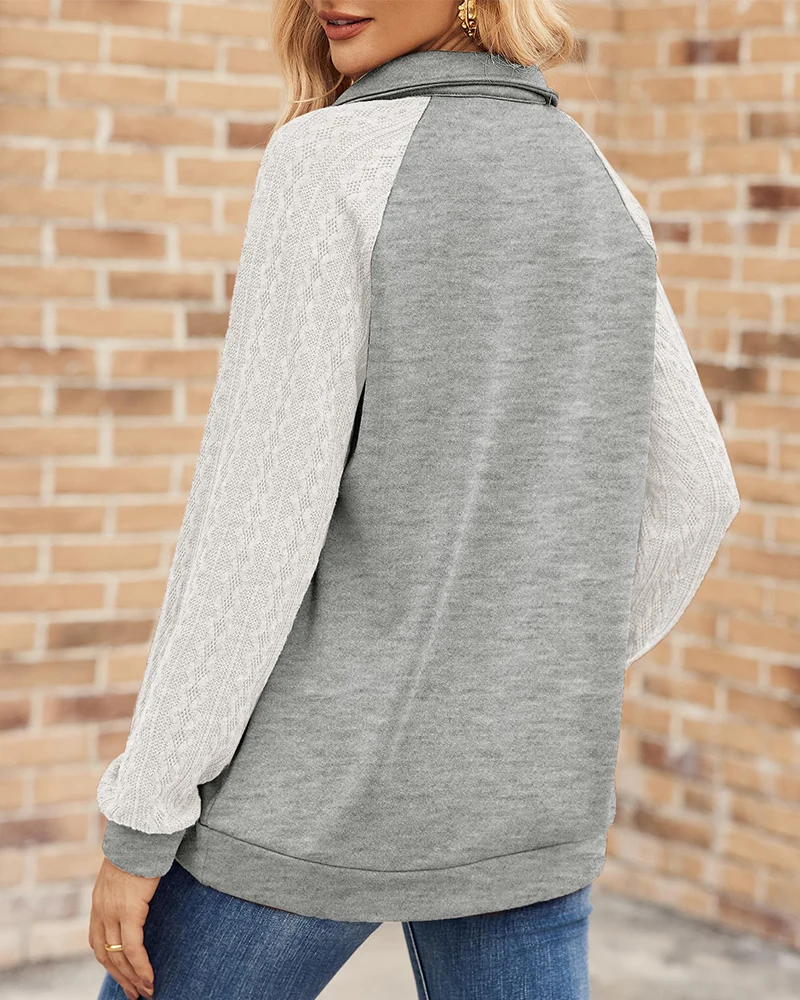 Factory Direct Sales Fall and Winter Casual Women's Half Zip Pullover Sweatshirt Solid Color Knitted Long Sleeve Loose Fit Tops