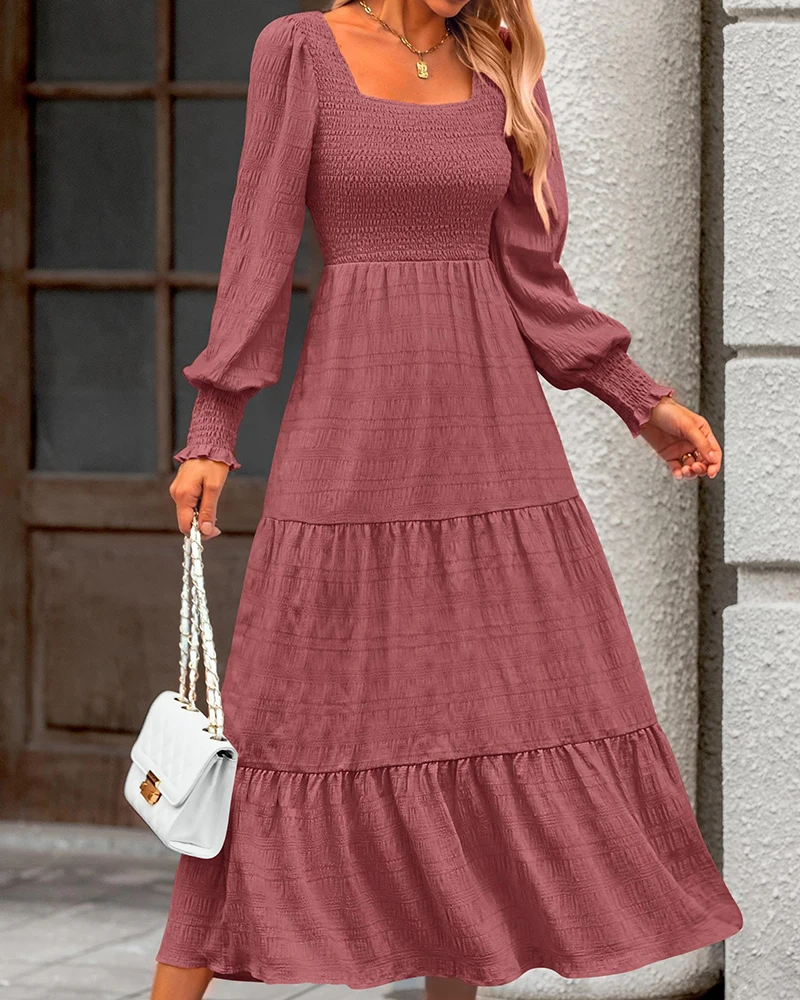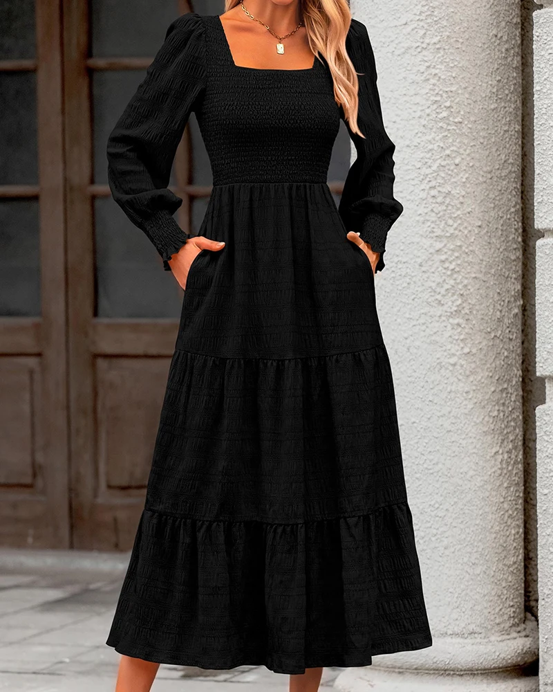 Factory Women Temperament Clothing 2026 Elegant Tunic A-line Maxi Dress Patchwork Textured Dressy Flowy Long Dress with Pockets