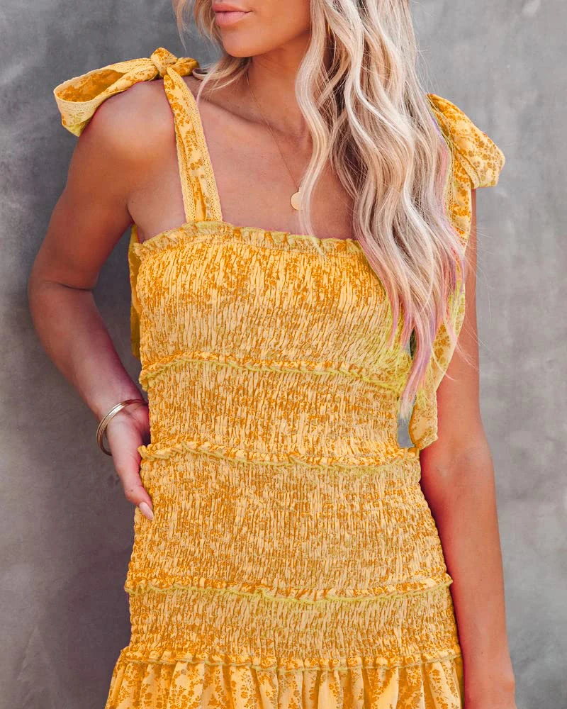 Elegant Flower Print Backless Cami Dress Factory Tiered Ruffle Ruched Mini Sundress Wrapped Chest for Summer Party Sweet