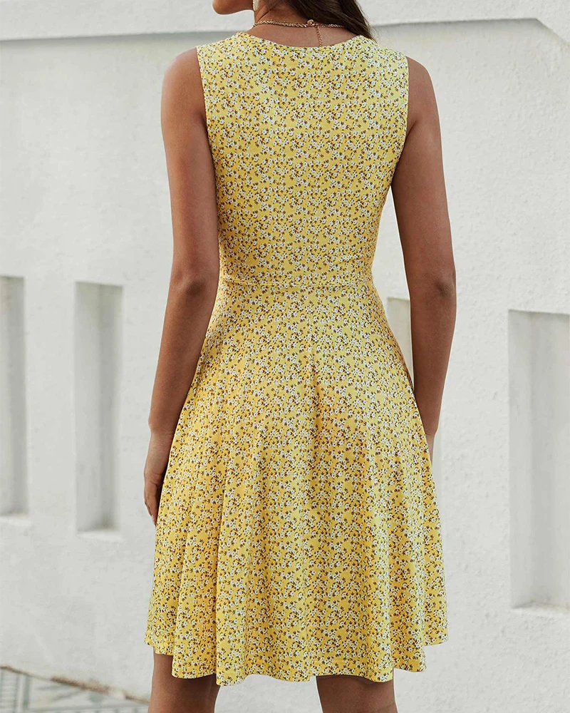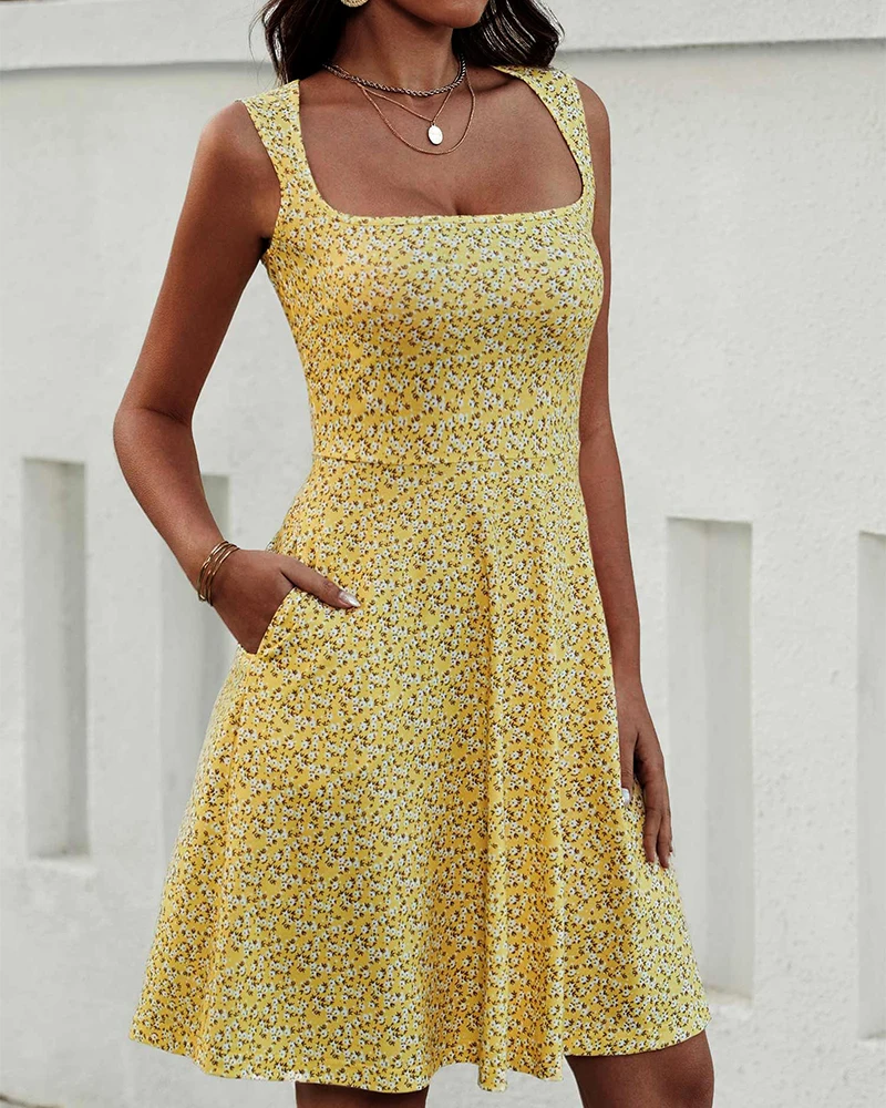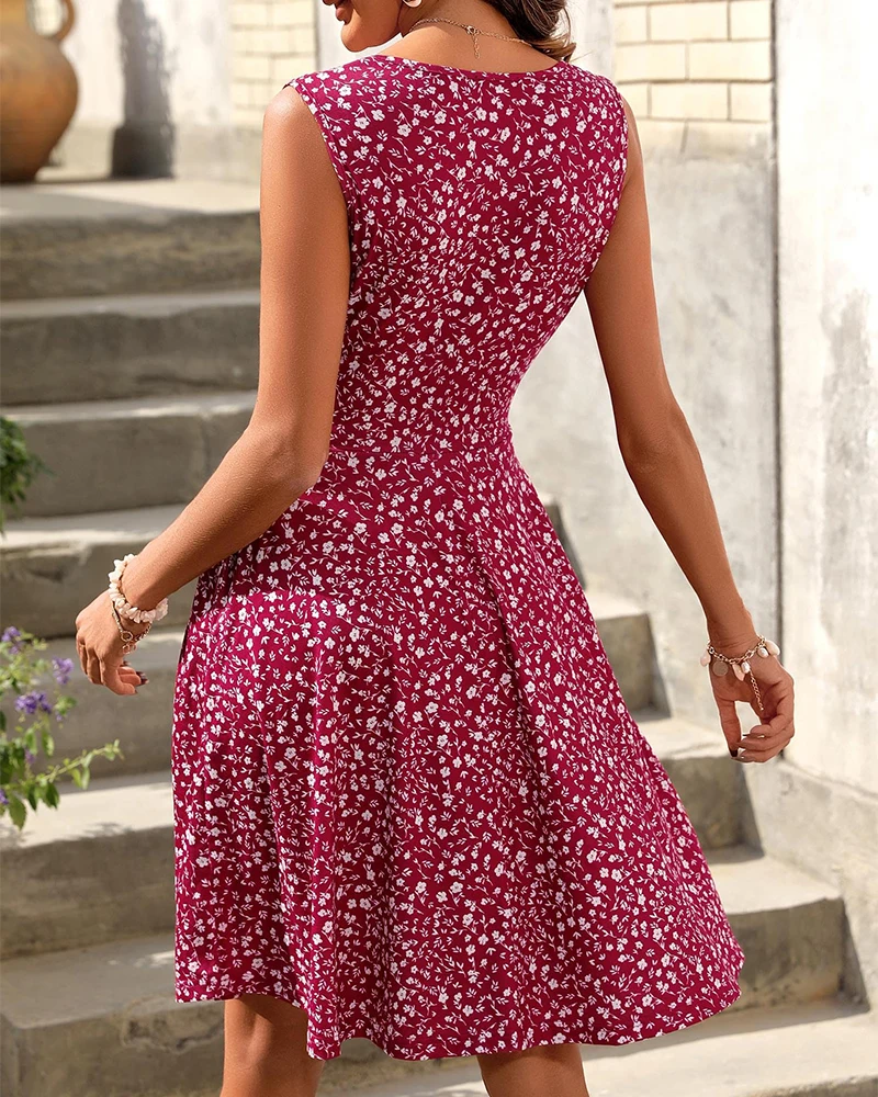 OEM ODM 2026 Trendy Floral Boho Print Sleeveless Tunic Sundress for Women Spaghetti Strap Summer Swing Dress Sweet Eco-Friendly