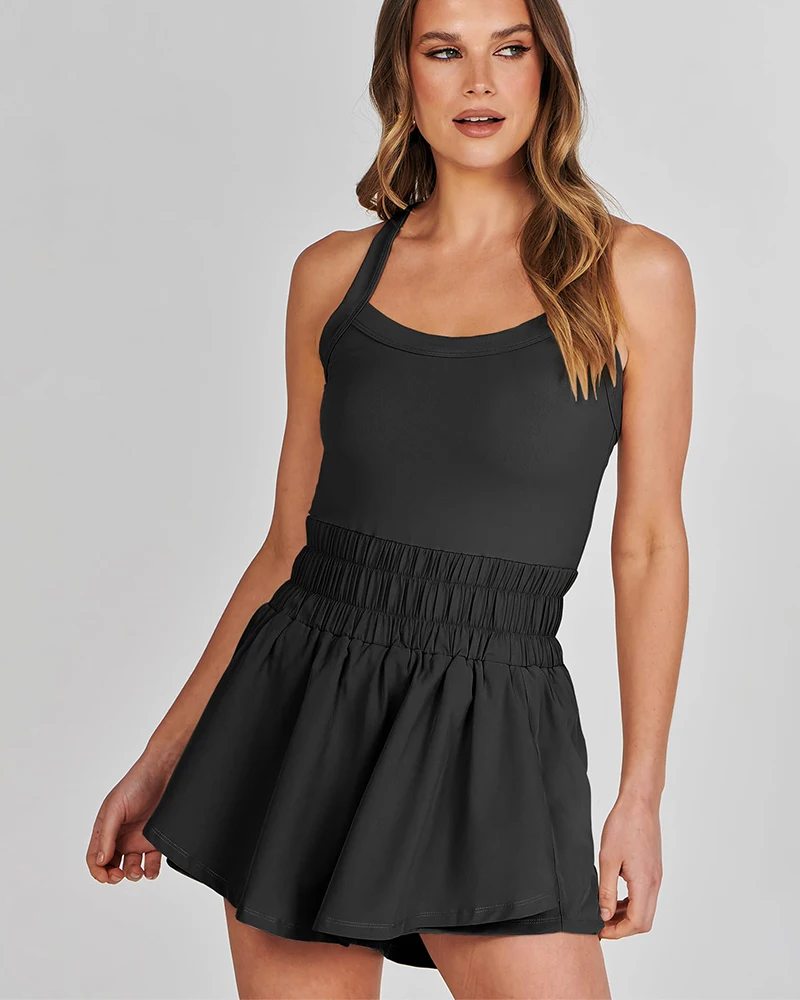 Factory Women's Quick Dry Golf Tennis Sports Dress Special Cross-strap Backless High Wrap Waist Ruffled Yoga Fitness Short Dress
