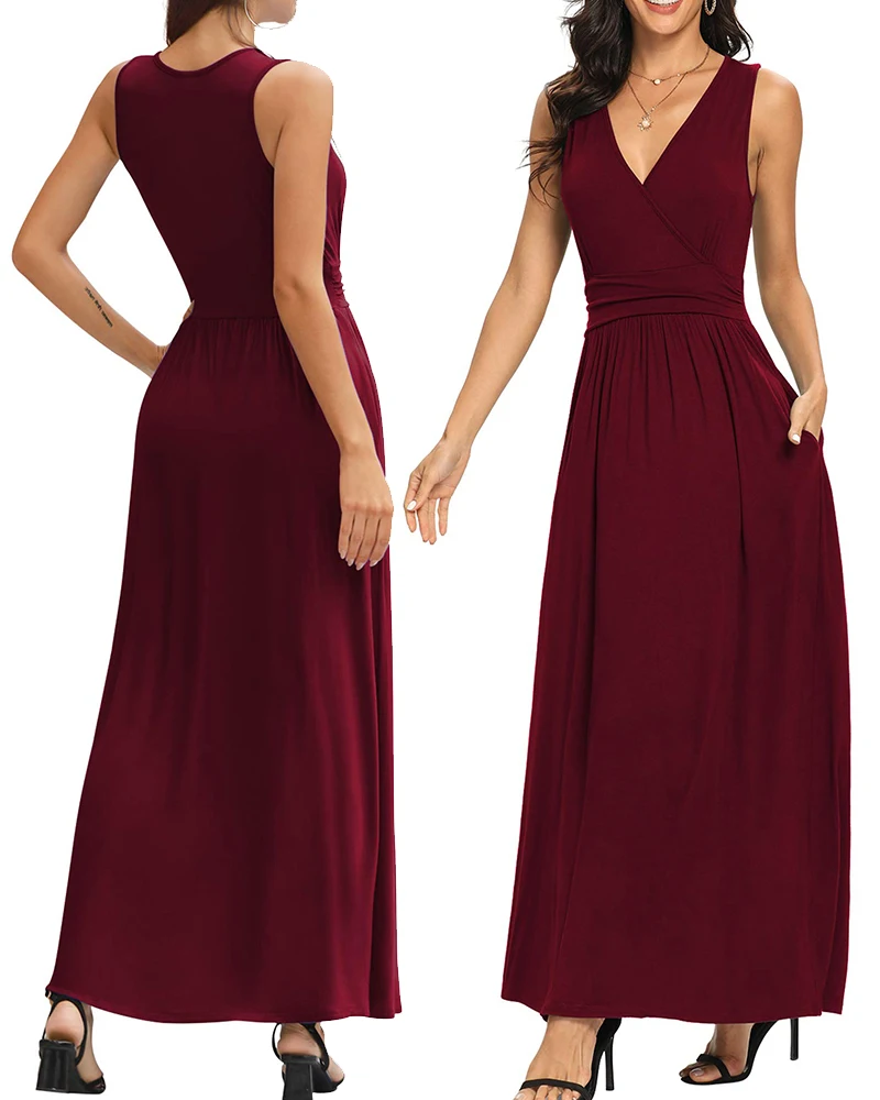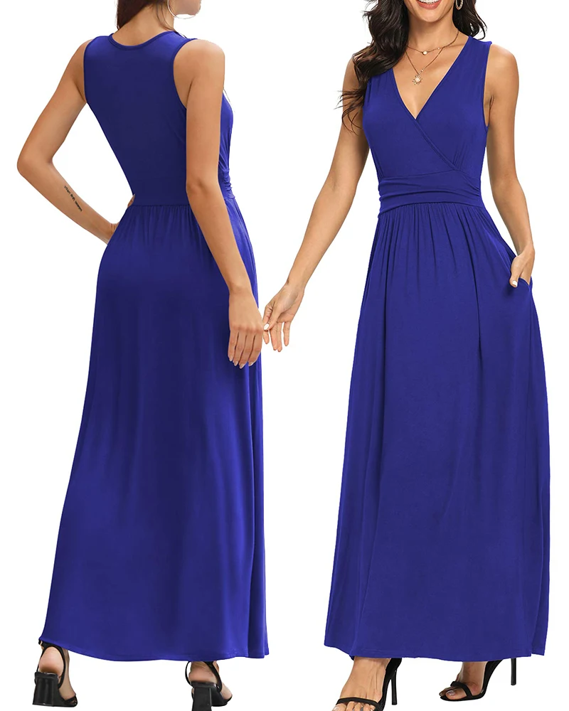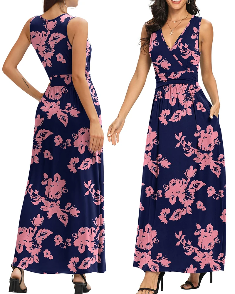 Wholesale High-quality Summer Women's High Waisted A-line Long Dresses Sexy Sleeveless Solid Printed Parties Casual Dresses