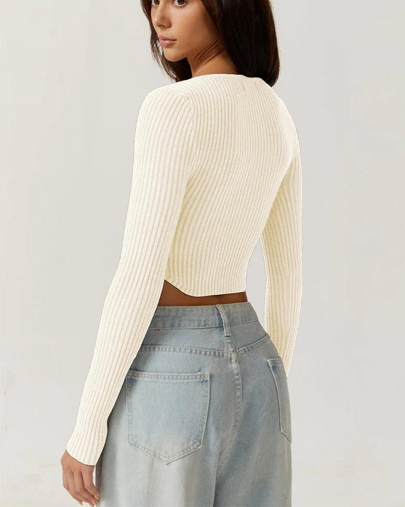 European and American Ribbed Knit Crop Top for Women Evening Low Cut V Neck Tops Sexy Tight All Matching Short Shirts