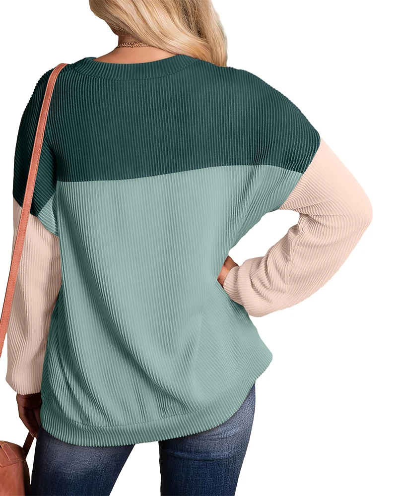 Hot Selling Women's Splicing Warm-Tone Crew Neck T-shirt Fall Comfortable Casual Loose Fit Long Sleeve Design Blouse