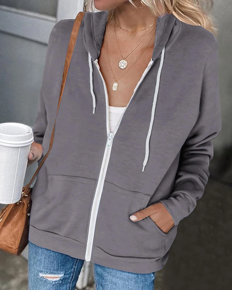 Women's Comfy Soft Zipper Hooded Jacket Custom Logo Solid Colour Long Sleeve Oversized Sweatshirts Coat Pockets Knitted Winter