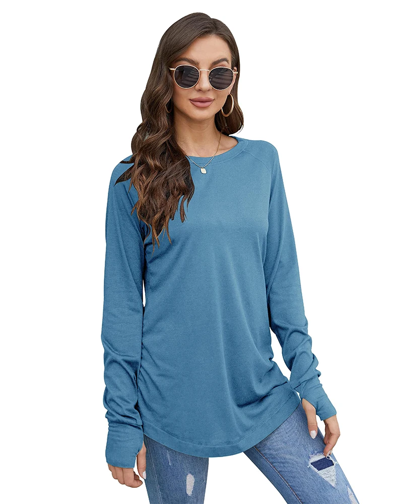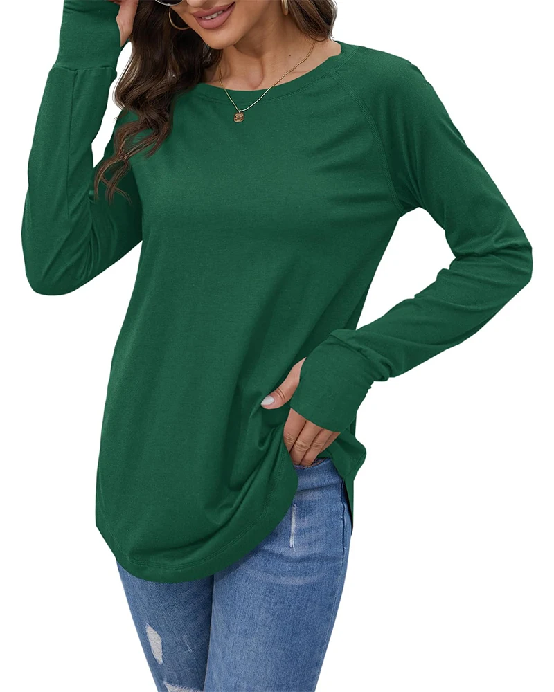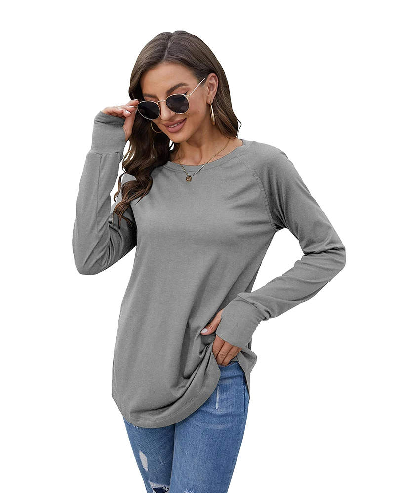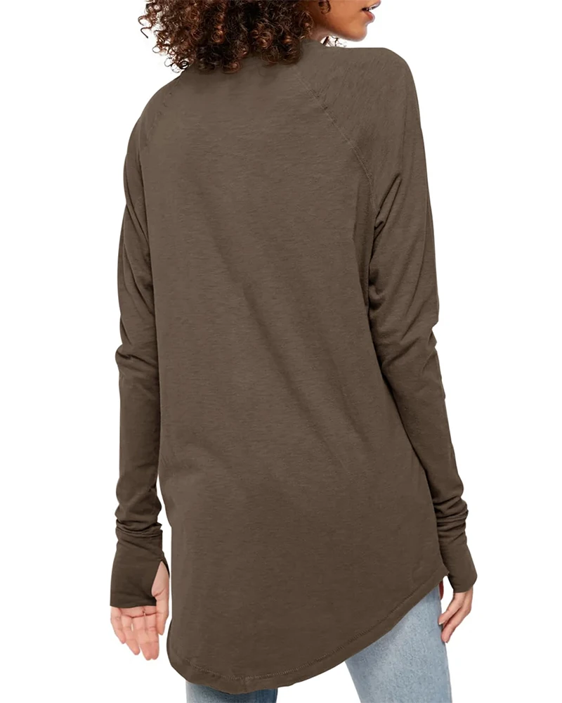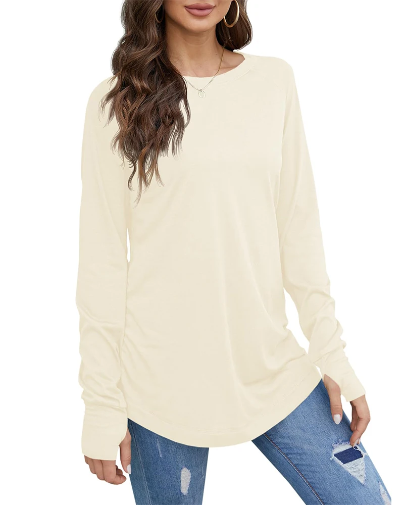 Wholesale Comfortable Long Sleeve Thumb Hole Basic Top Custom logo Round Neck Irregular Hem Relaxed Fit Tunic T Shirt for Ladies